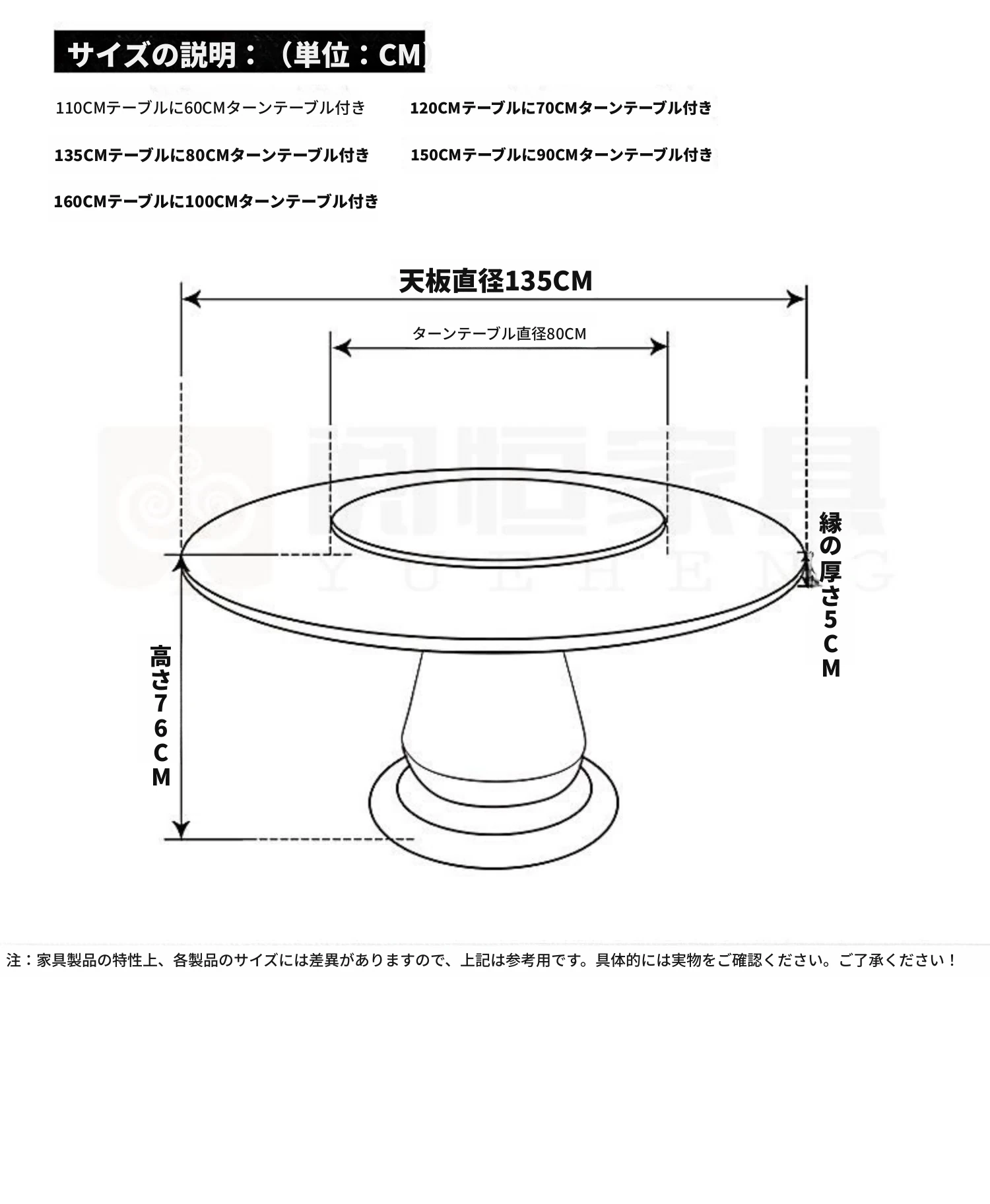1テーブル6椅子1.35メートルテーブル80回転盤PUレザー椅子