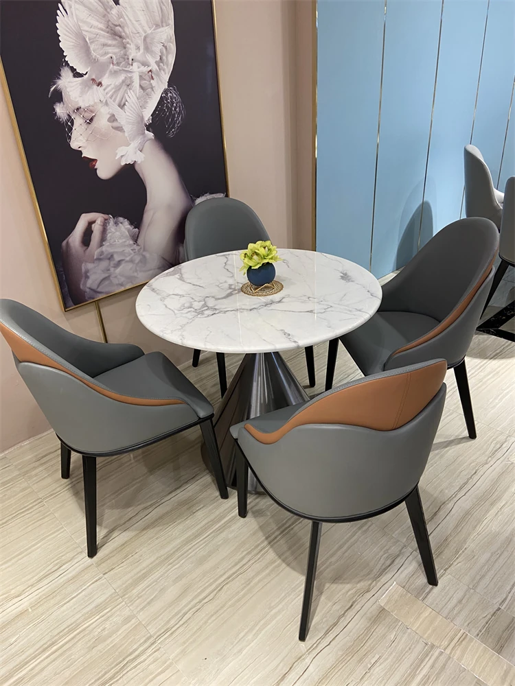 1.2メートルテーブル+4超ファイバーレザー椅子特価 ステンレス脚58直径