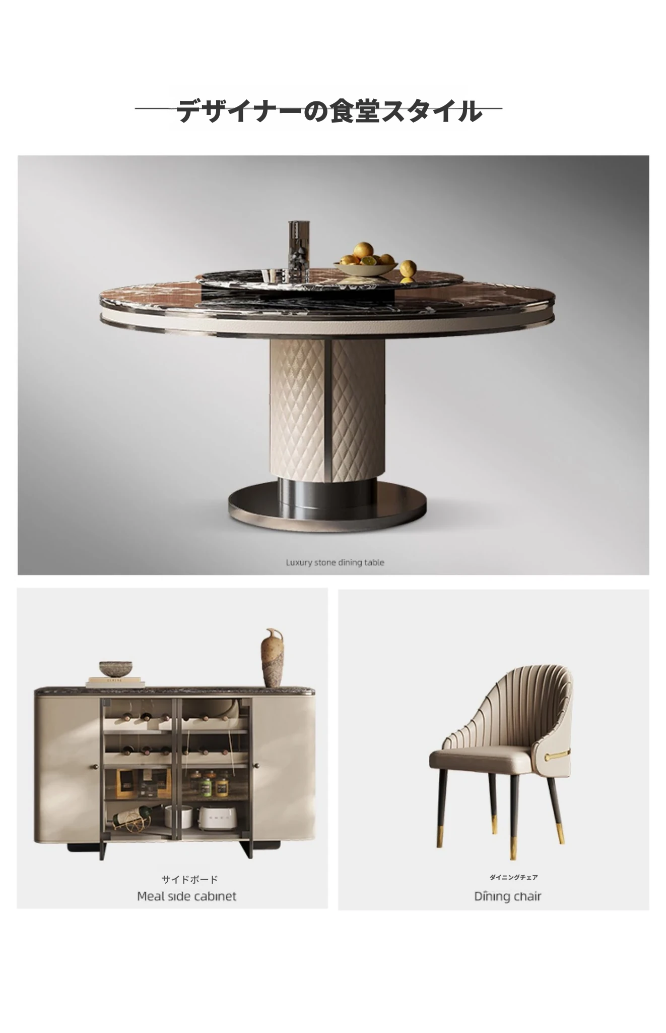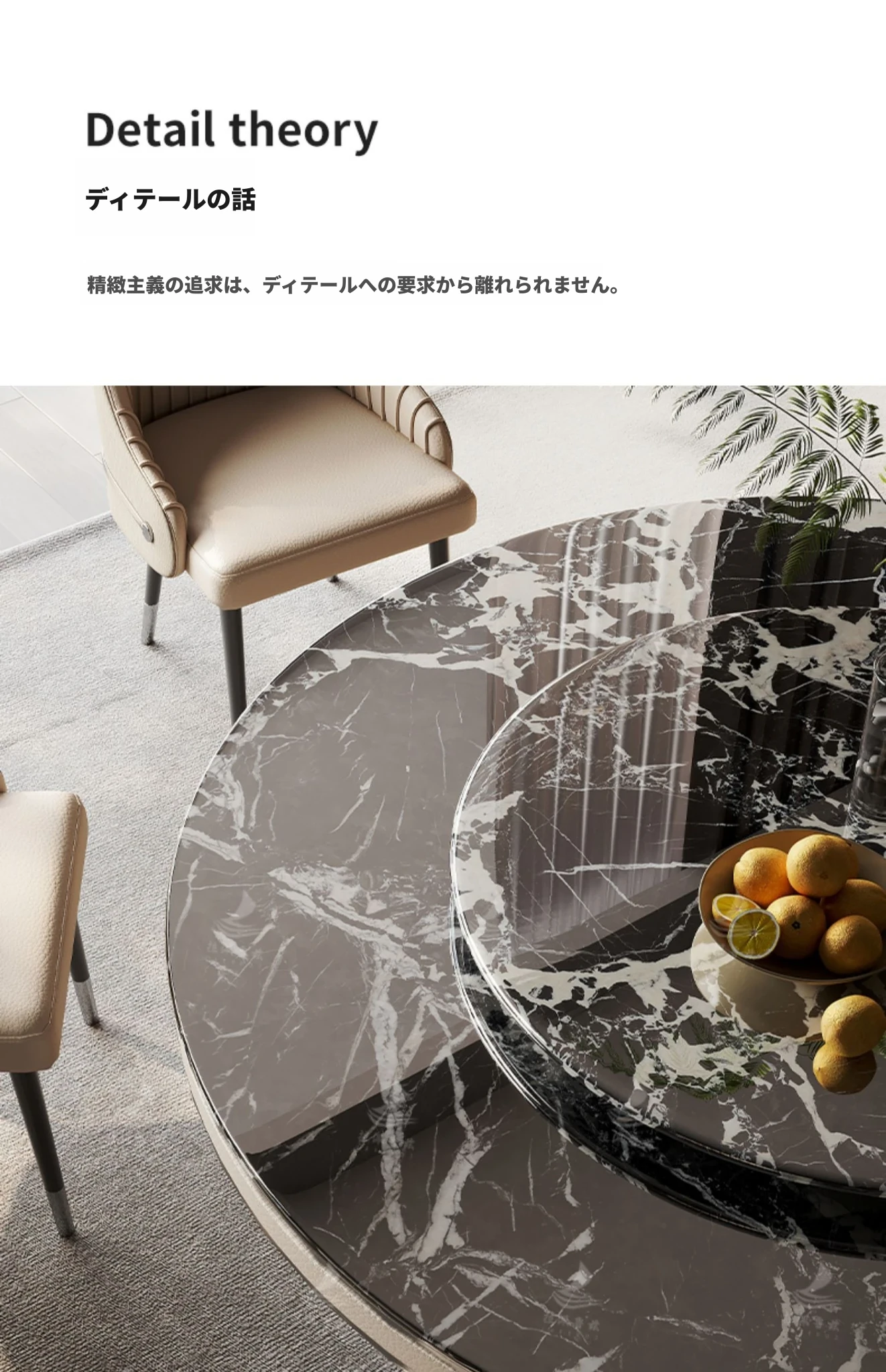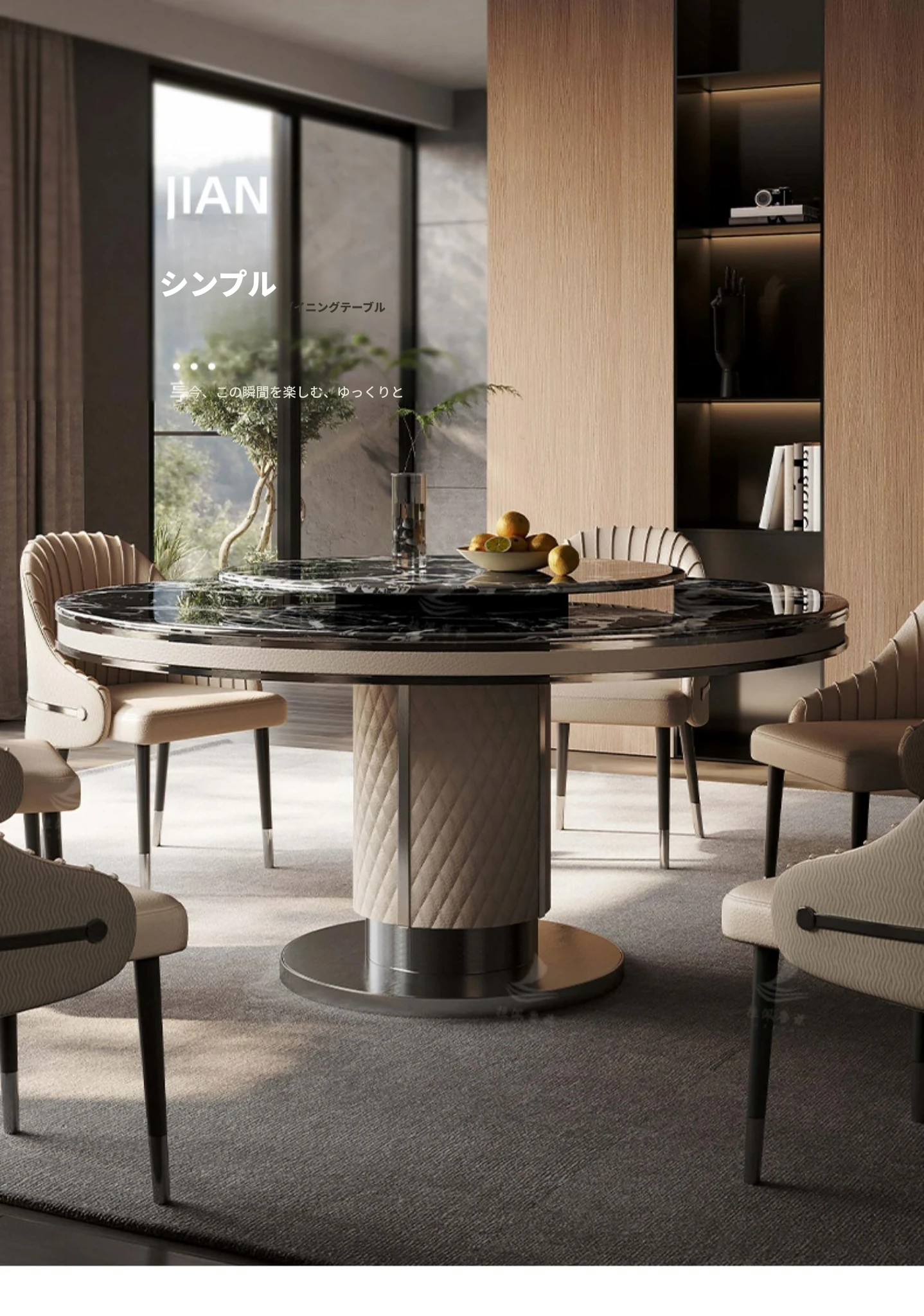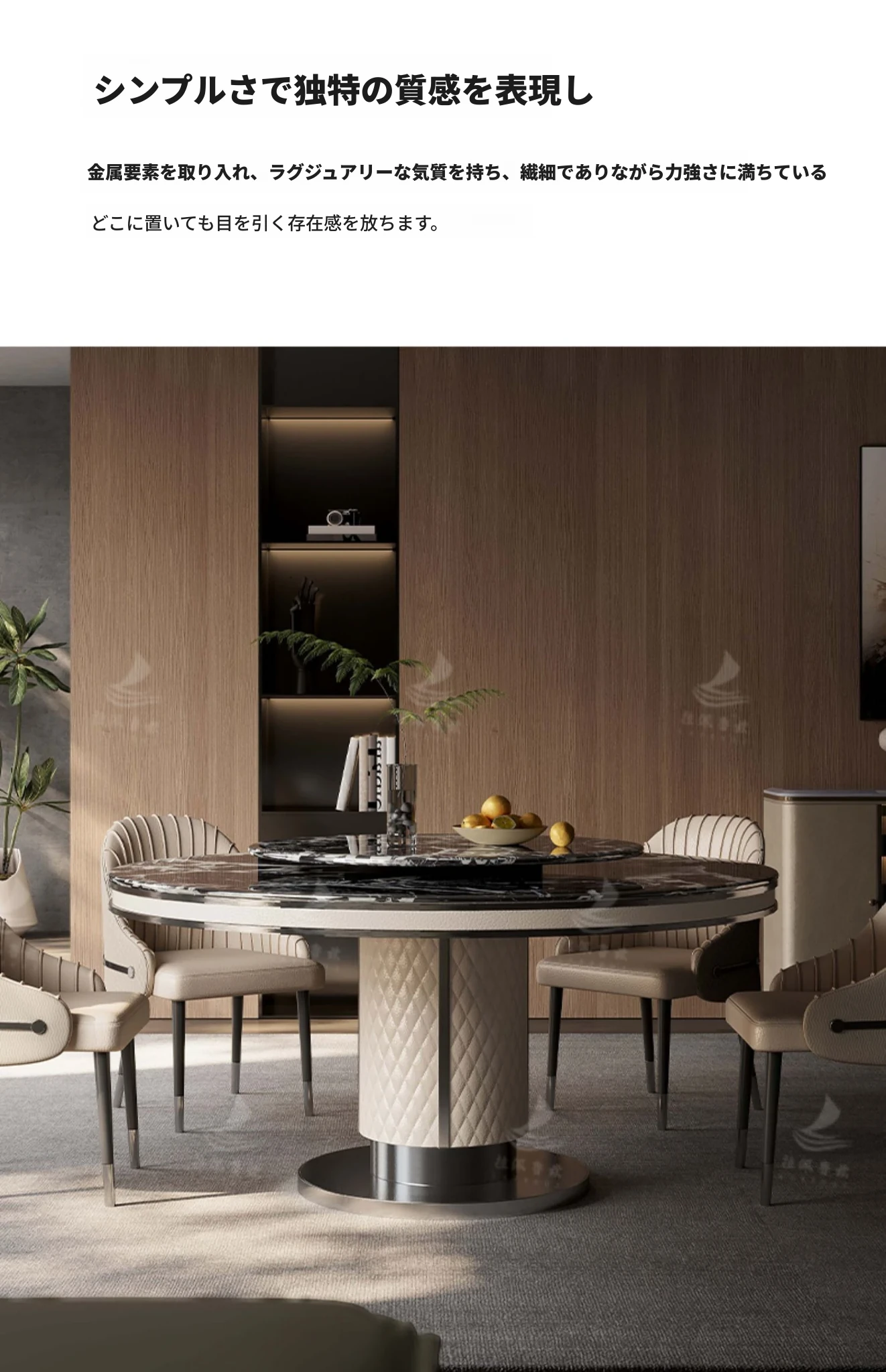 ラグジュアリーな大理石製の円形ダイニングテーブル、回転トレイ付き!モダンな別荘にぴったりの高級感あふれるデザイン。家庭用にも最適で、あなたの空間を一層魅力的に演出します。