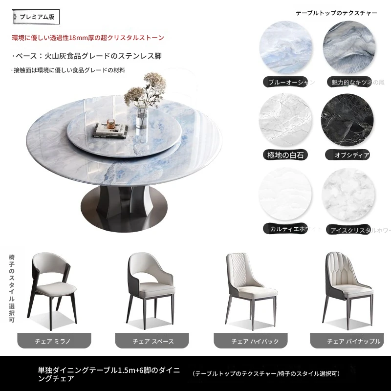 【18mm超晶石】1.5メートルY03#円卓+6椅子 ステンレスベース