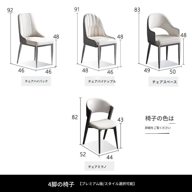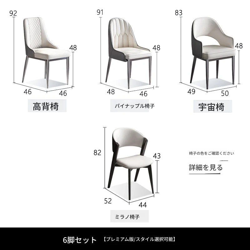 8脚のステンレス脚ダイニングチェア 【スタイル選択可】