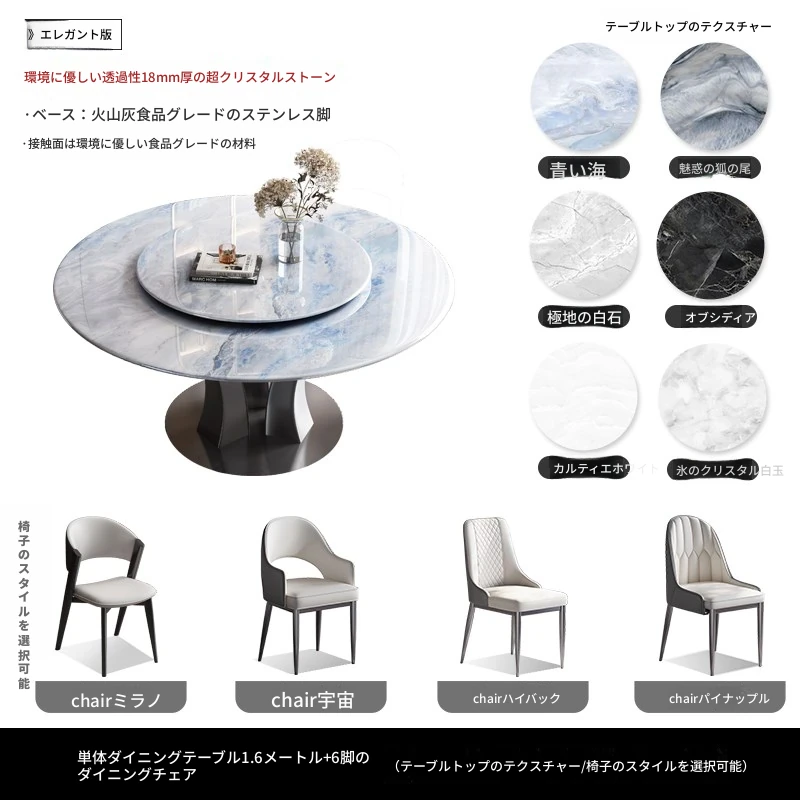 【18mm超晶石】1.6メートルY03#円卓+6椅子 ステンレスベース