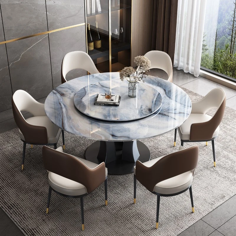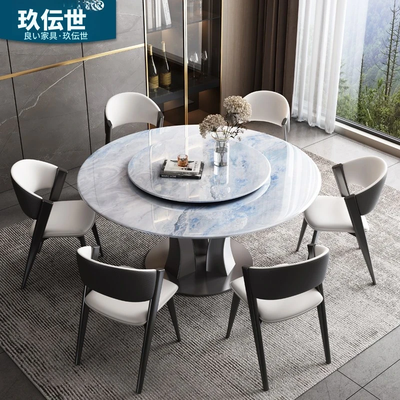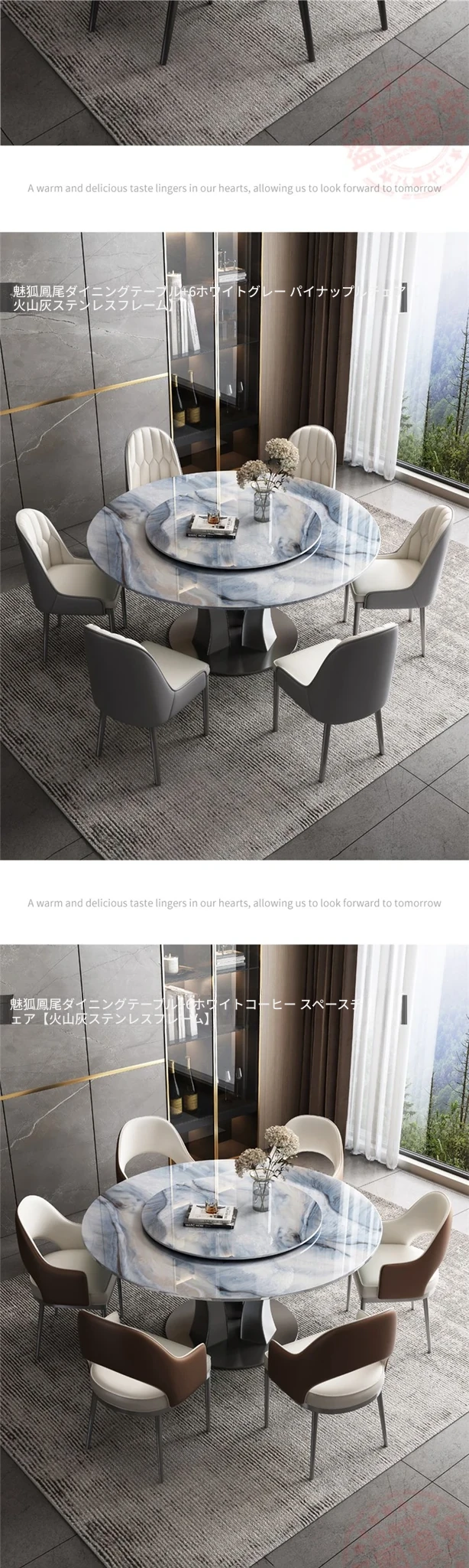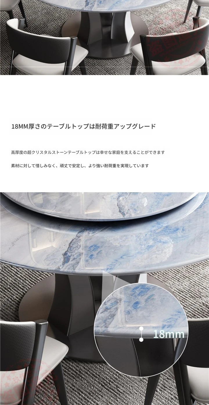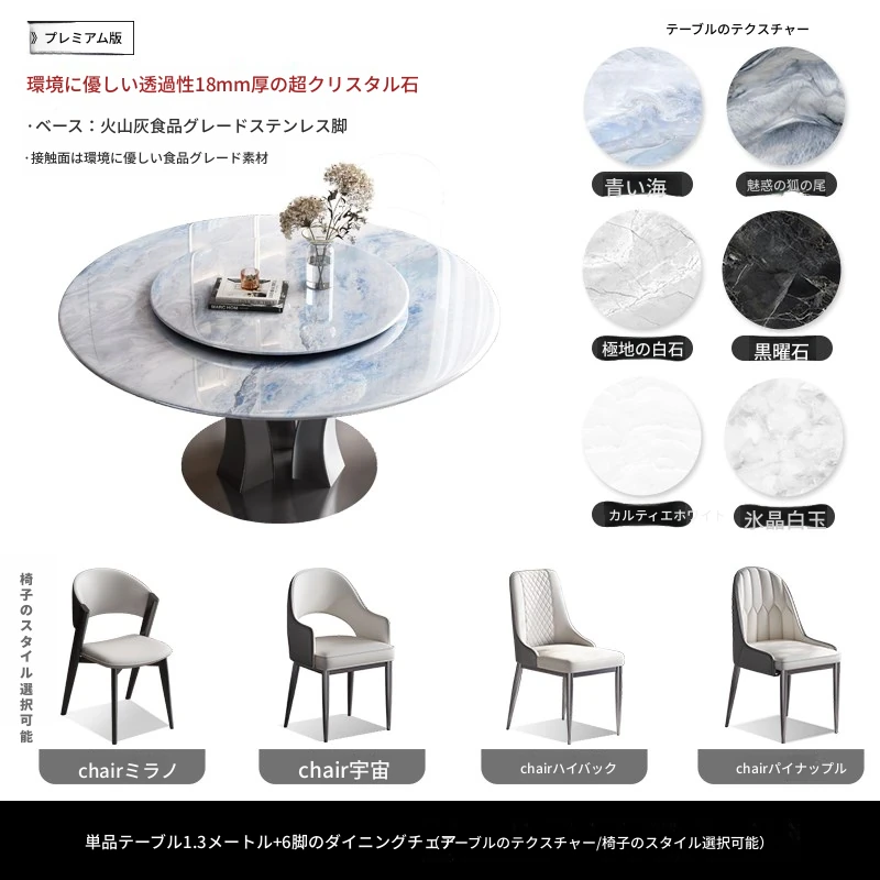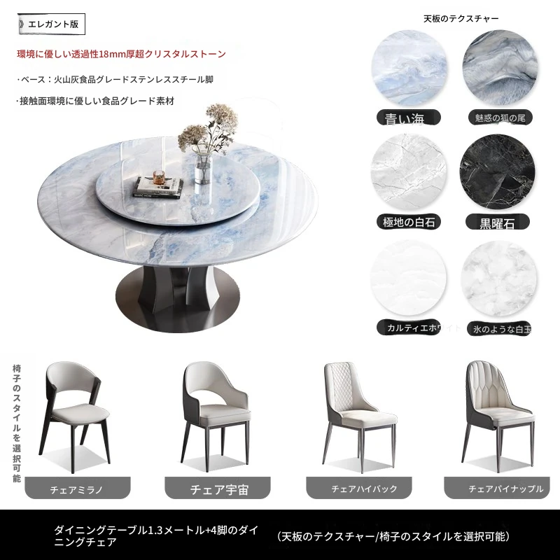 【18mm超晶石】1.2メートルY03#円卓+6椅子 ステンレスベース