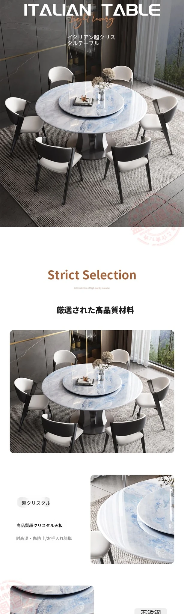 【18mm超晶石】1.6メートルY03#円卓 ステンレスベース