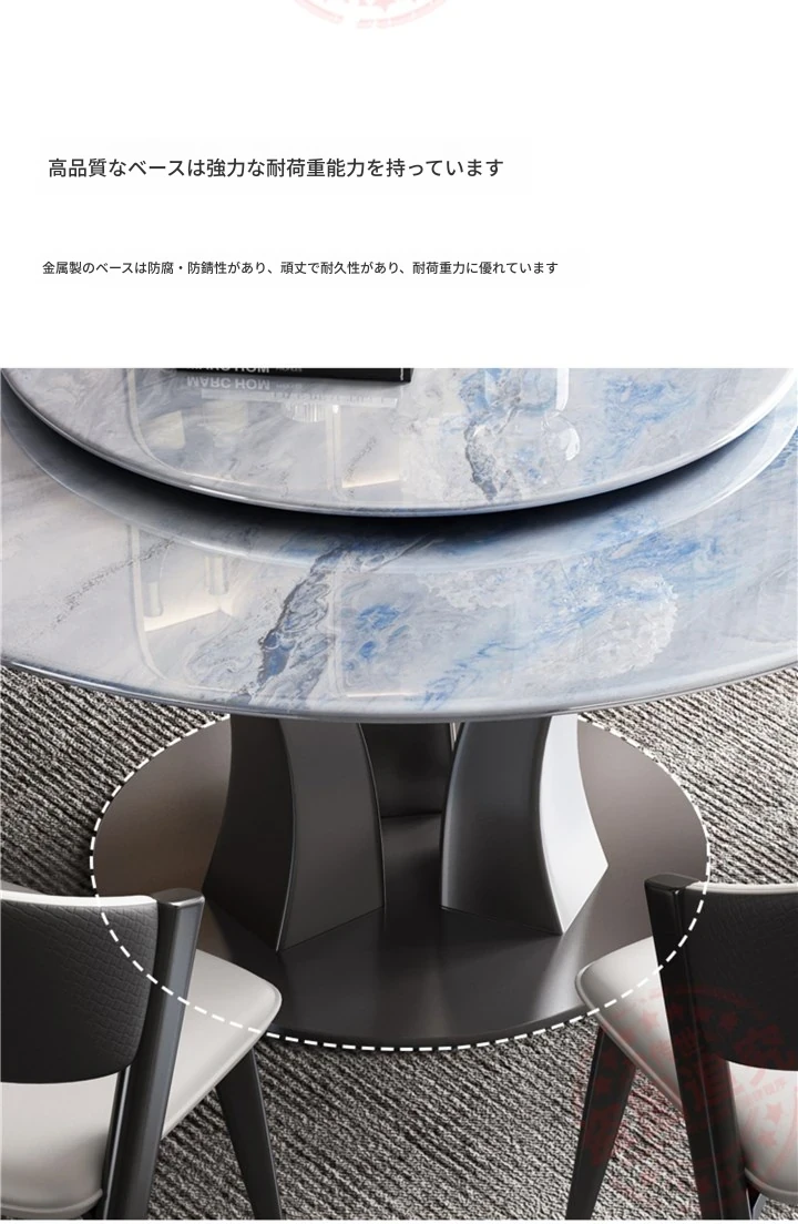 【18mm超晶石】1.2メートルY03#円卓+4椅子 ステンレスベース