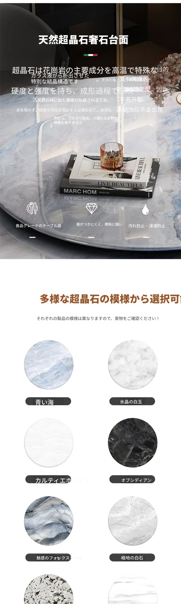 【18mm超晶石】1.3メートルY03#円卓 ステンレスベース