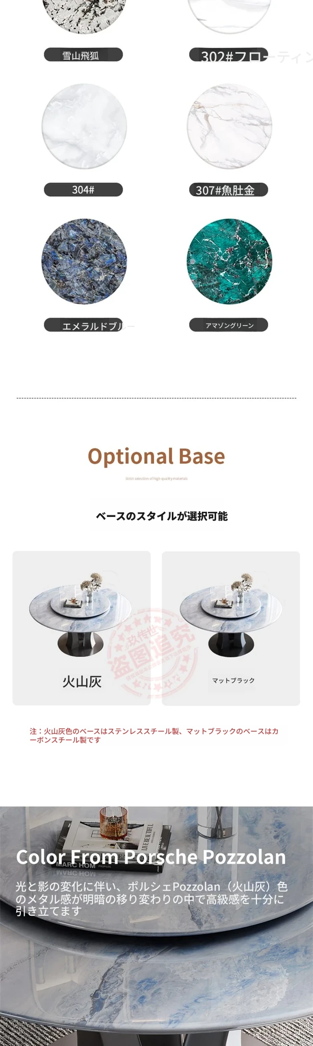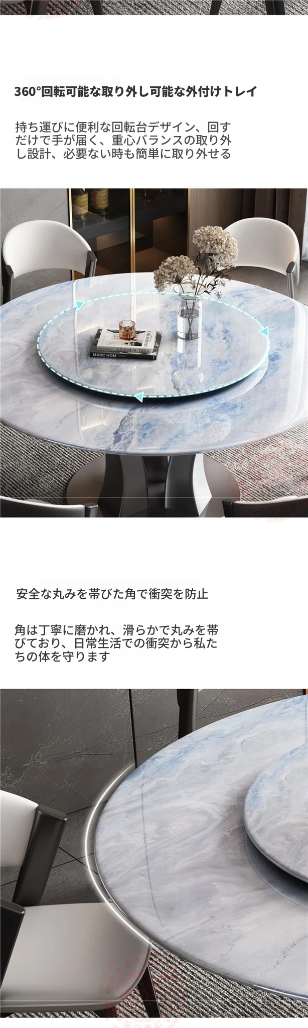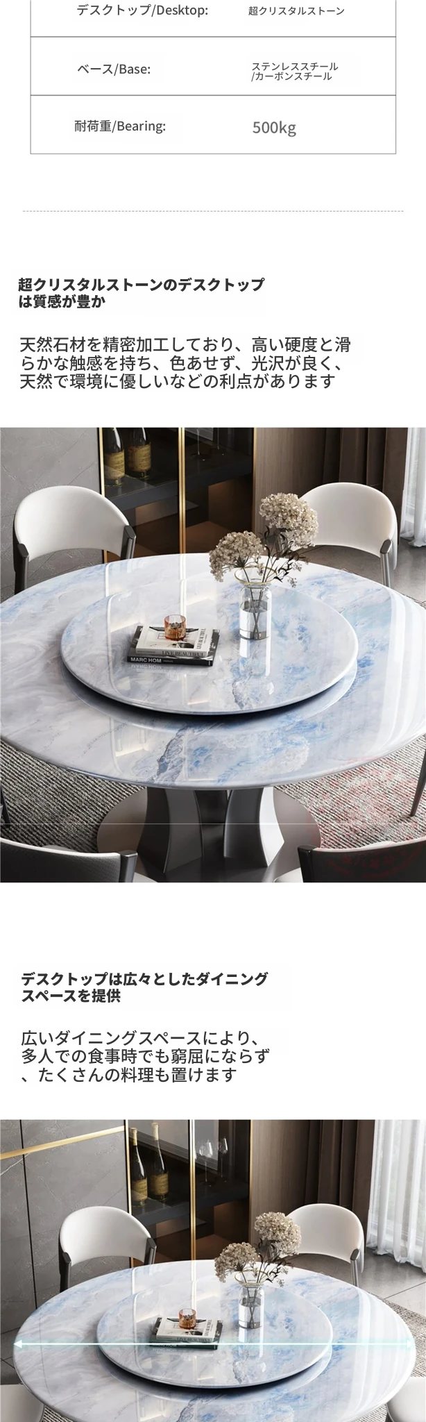【18mm超晶石】1.2メートルY03#円卓 ステンレスベース