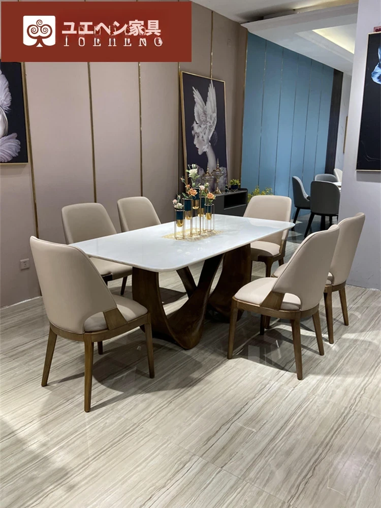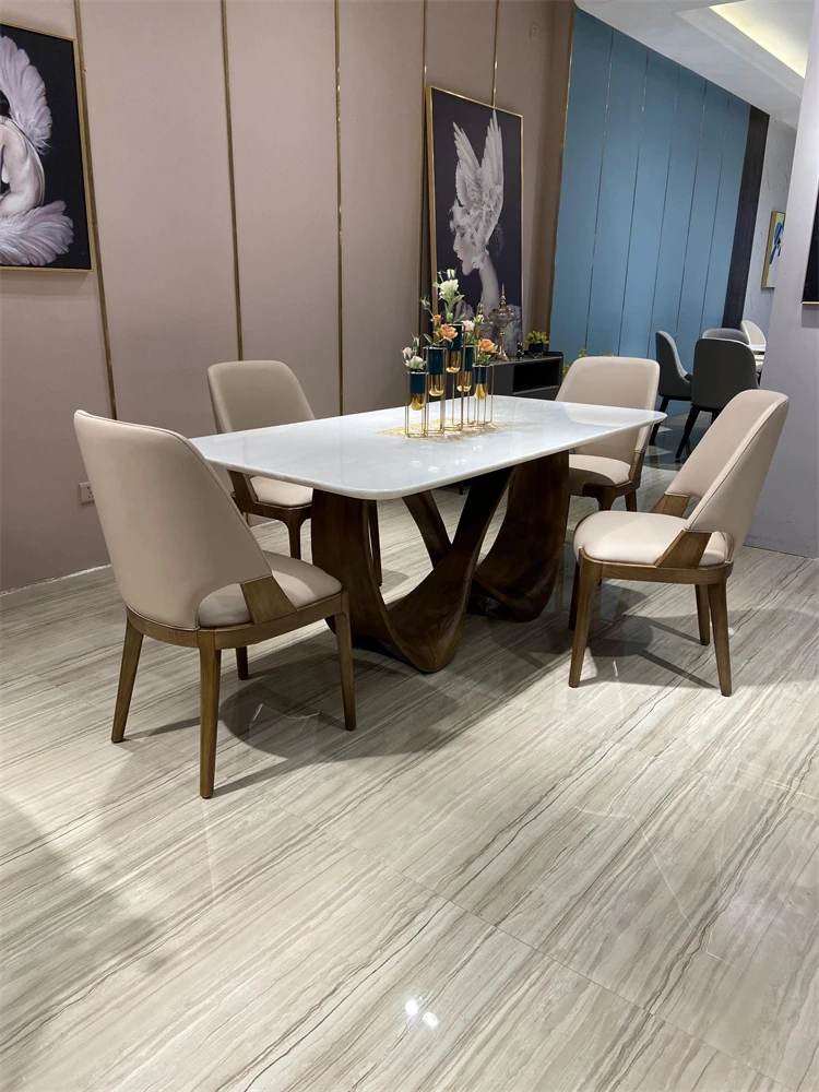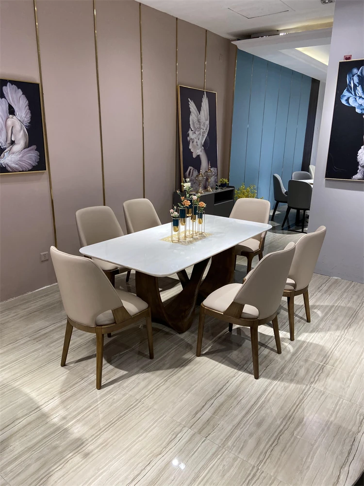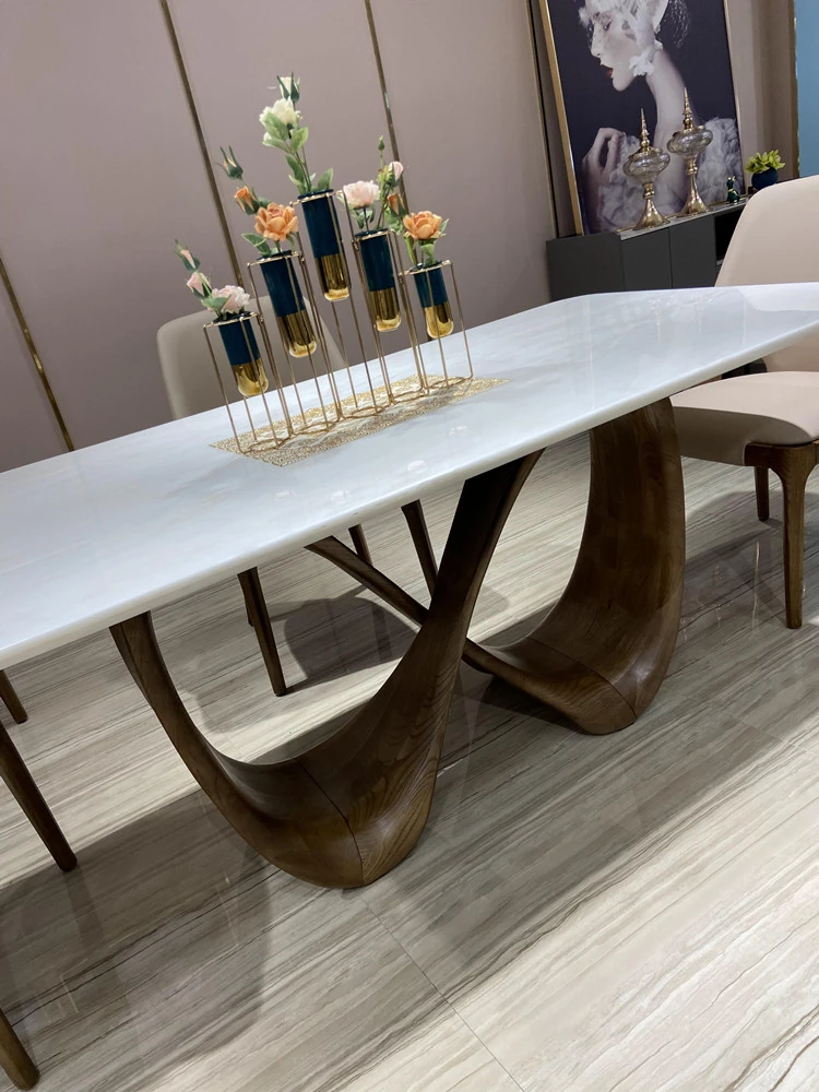 輸入天然ファンディホワイト2.2m x 1mテーブル(椅子なし、浅いウォールナット色脚)