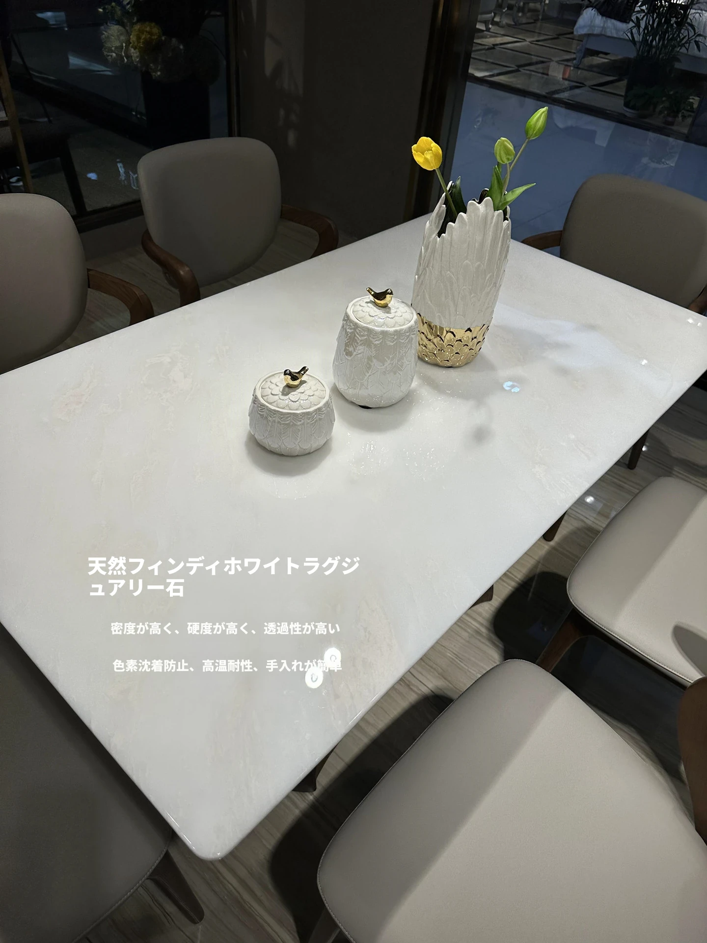 輸入天然ファンディホワイト2m x 1mテーブル(10脚付き)