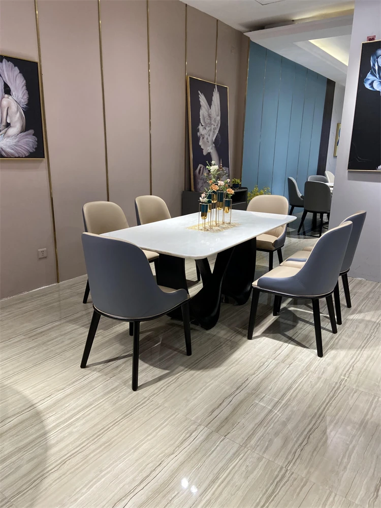 輸入天然ファンディホワイト2m x 1mテーブル(8脚付き)