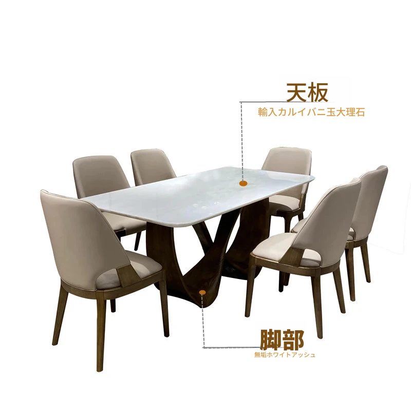 輸入天然ファンディホワイト1.8m x 90テーブル(6脚付き)