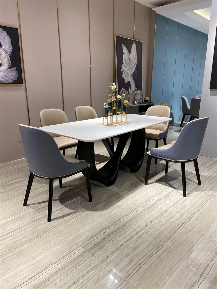 輸入天然ファンディホワイト2.2m x 1mテーブル(椅子なし、黒脚)