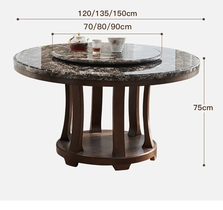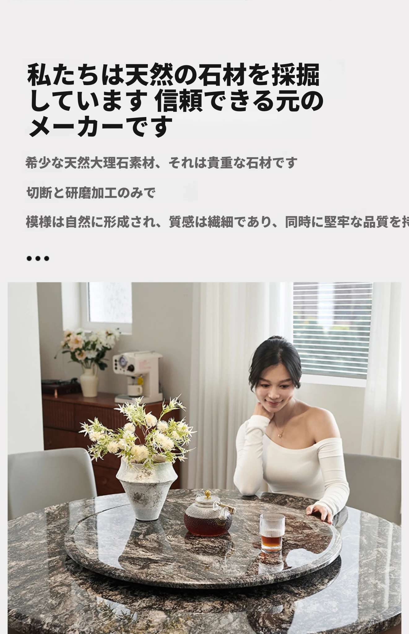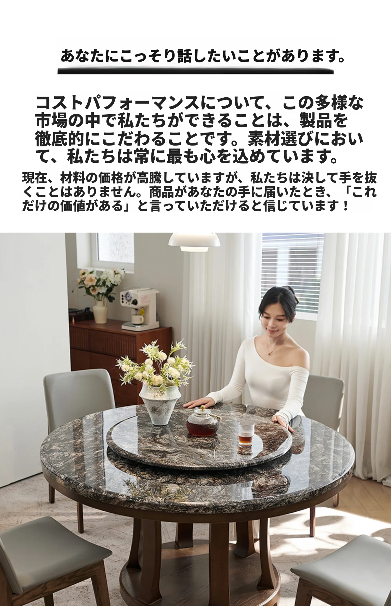 【1.5メートル回転盤なし天然大理石】本物の全木製円卓