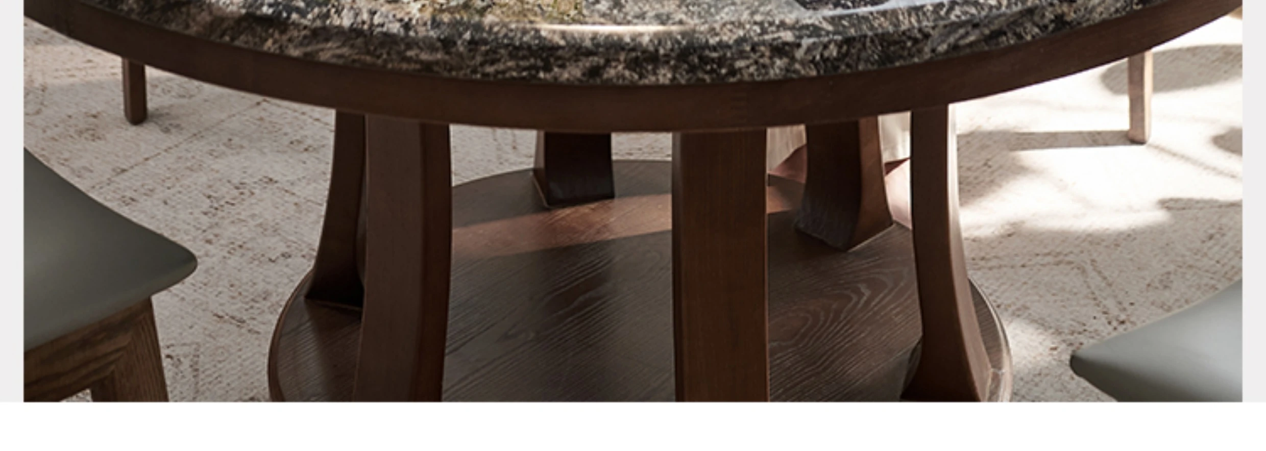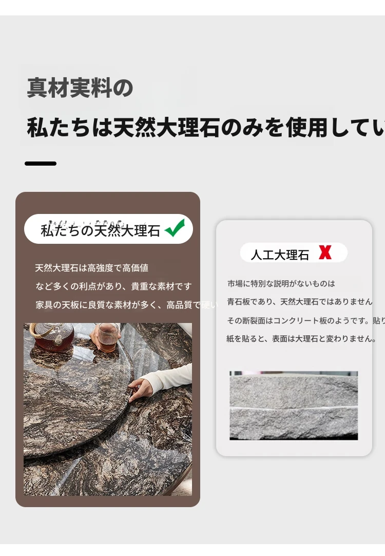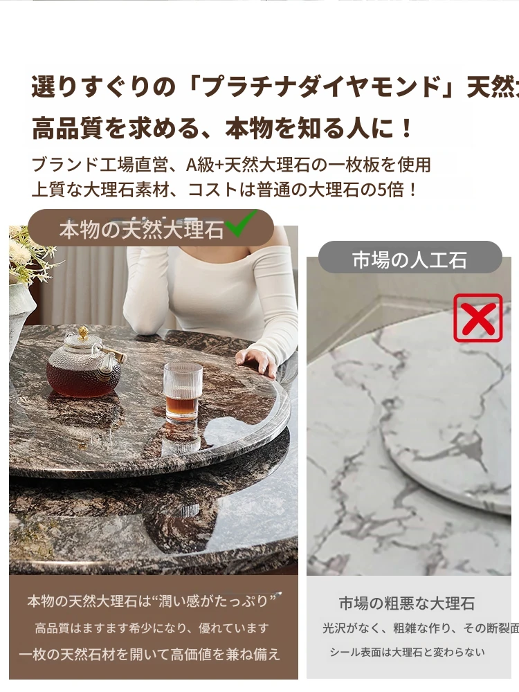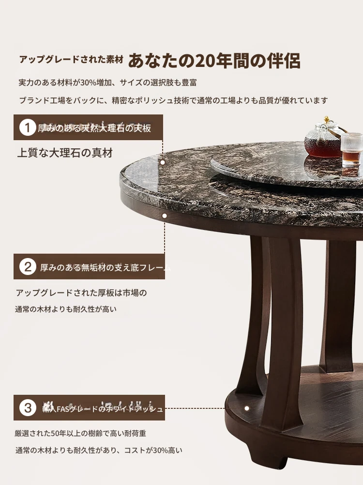 【1.5メートル回転盤なし天然大理石】本物の全木製円卓