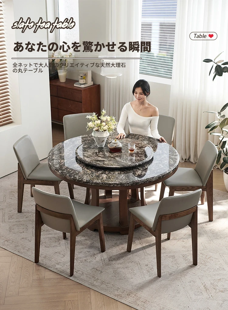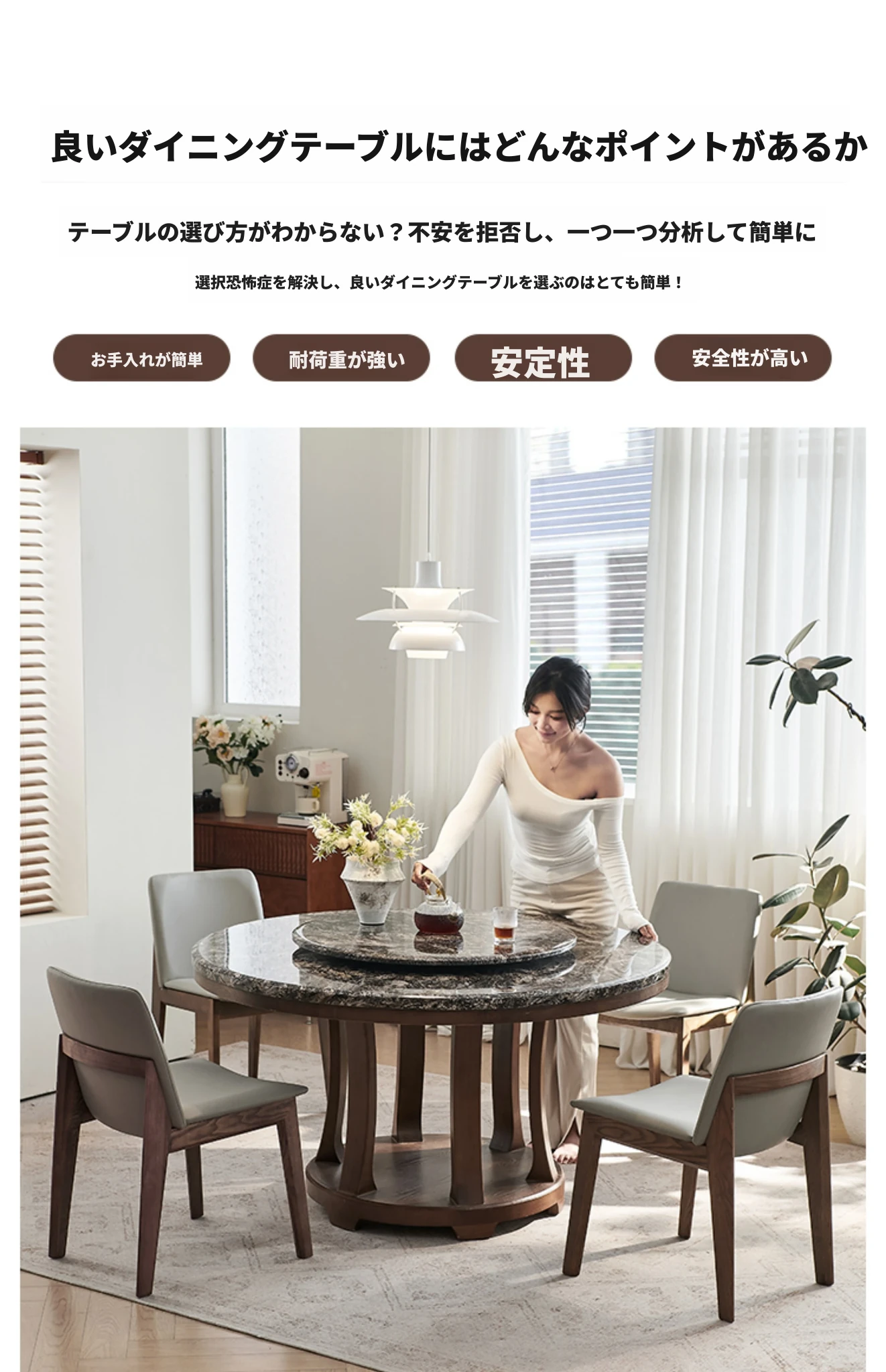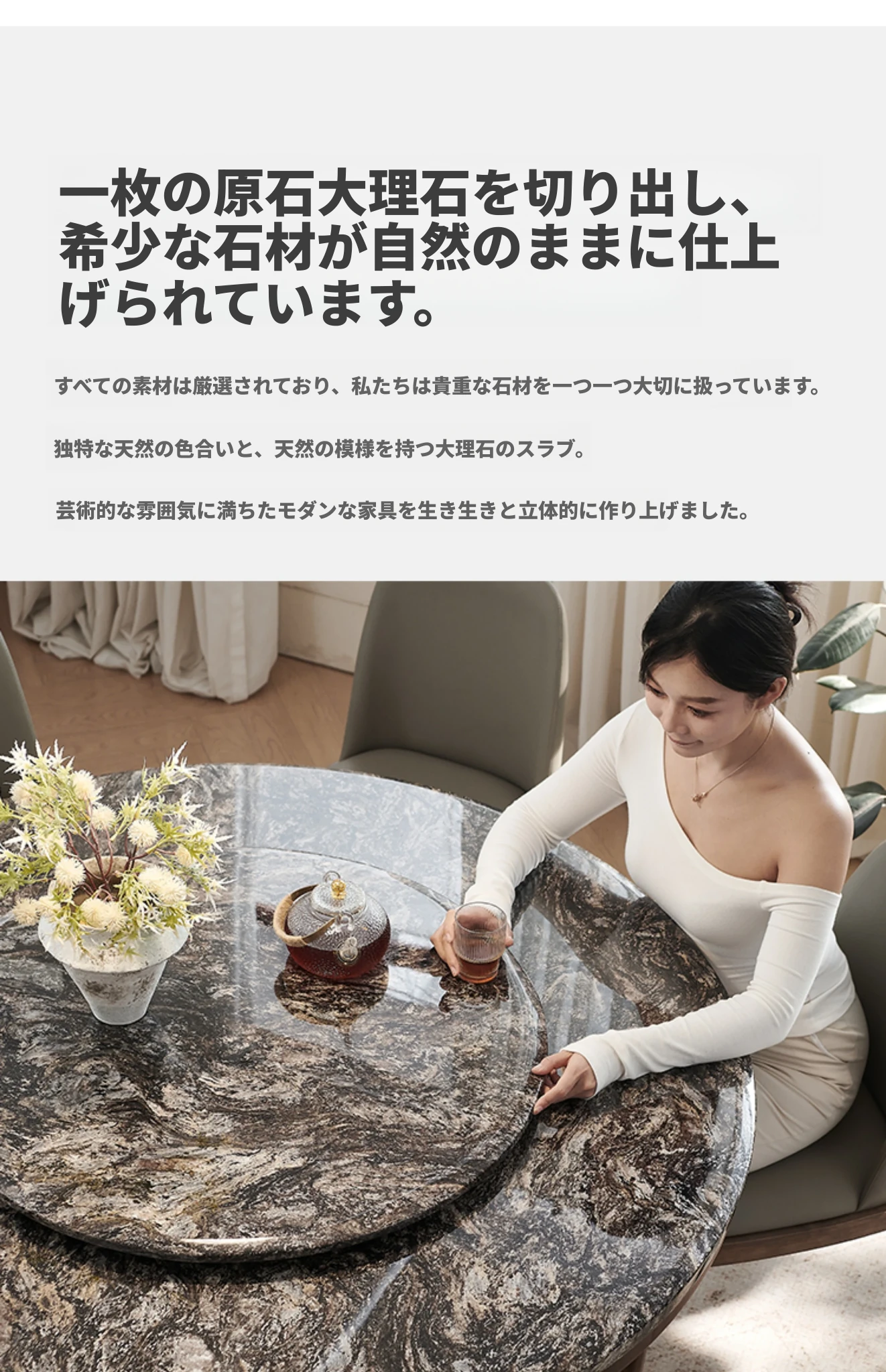 【1.5メートル回転盤付き天然大理石】本物の全木製円卓