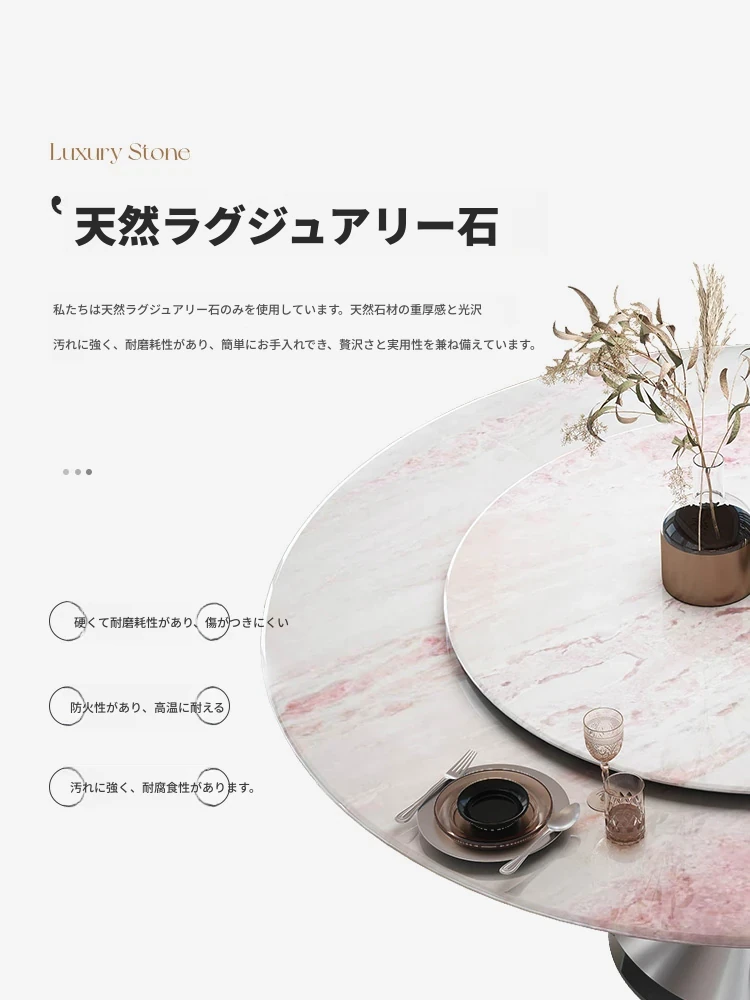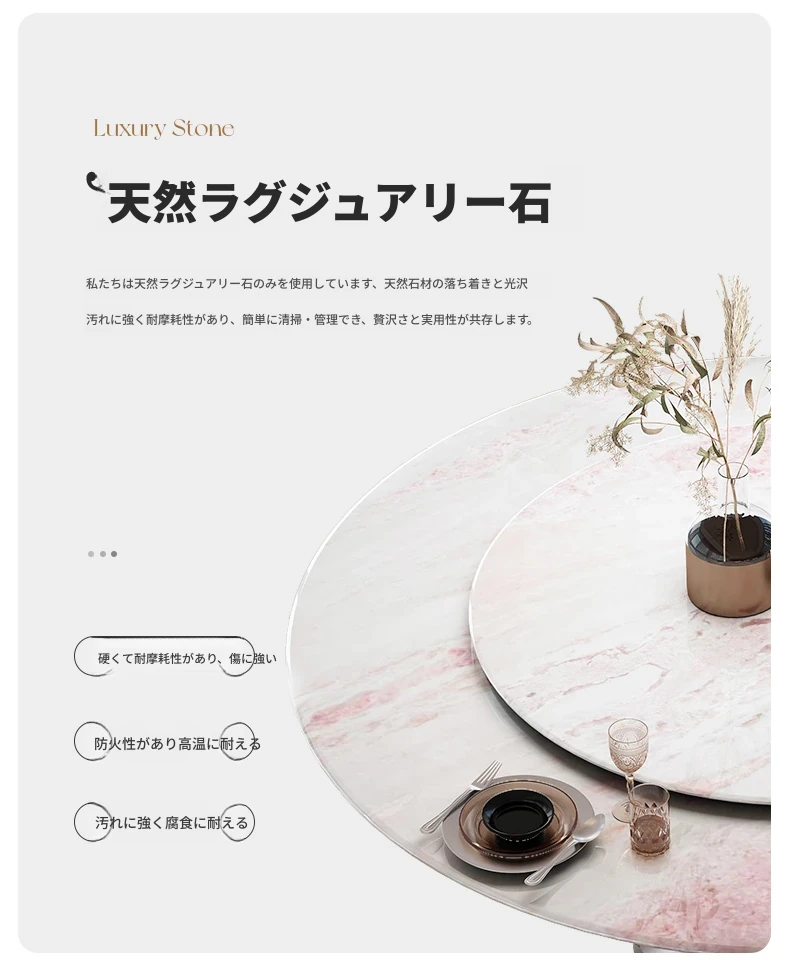 1.2メートルの円形テーブル+60CMの回転盤【天然ラグジュアリーストーンローズレインボー】 【偽造品は10倍返し】