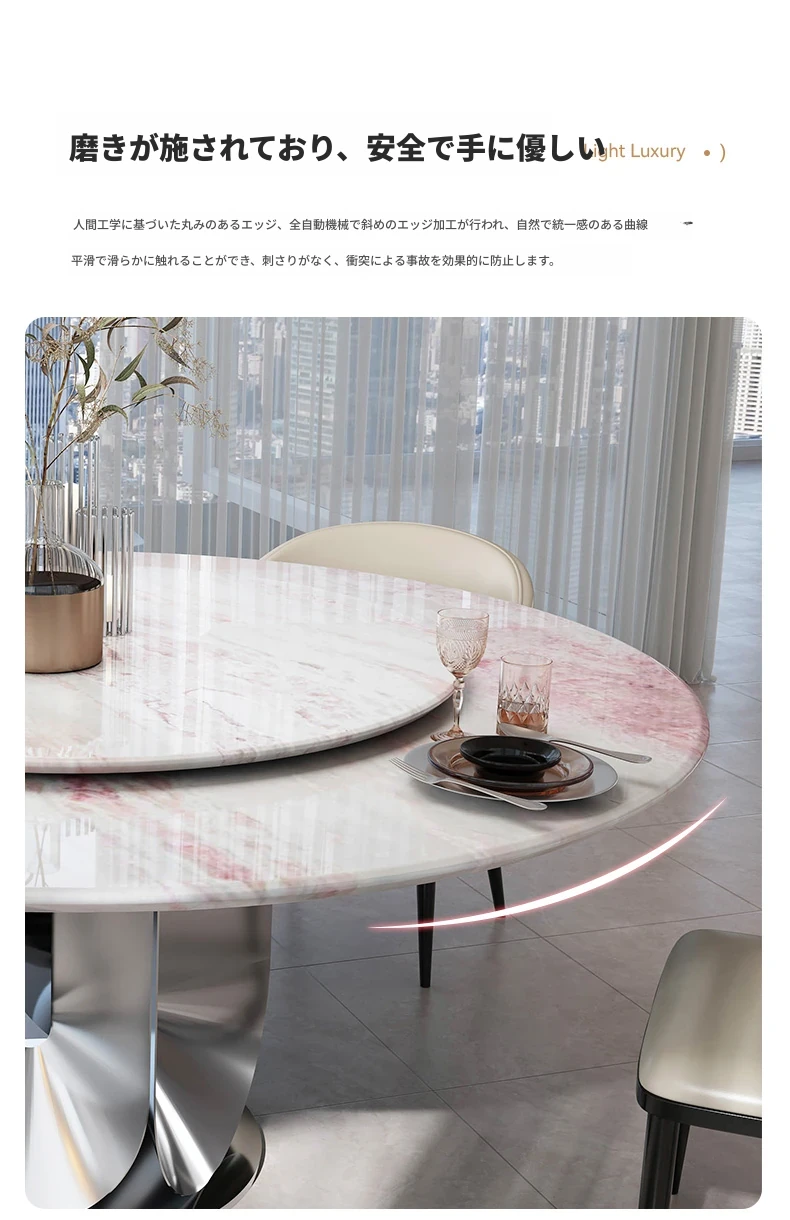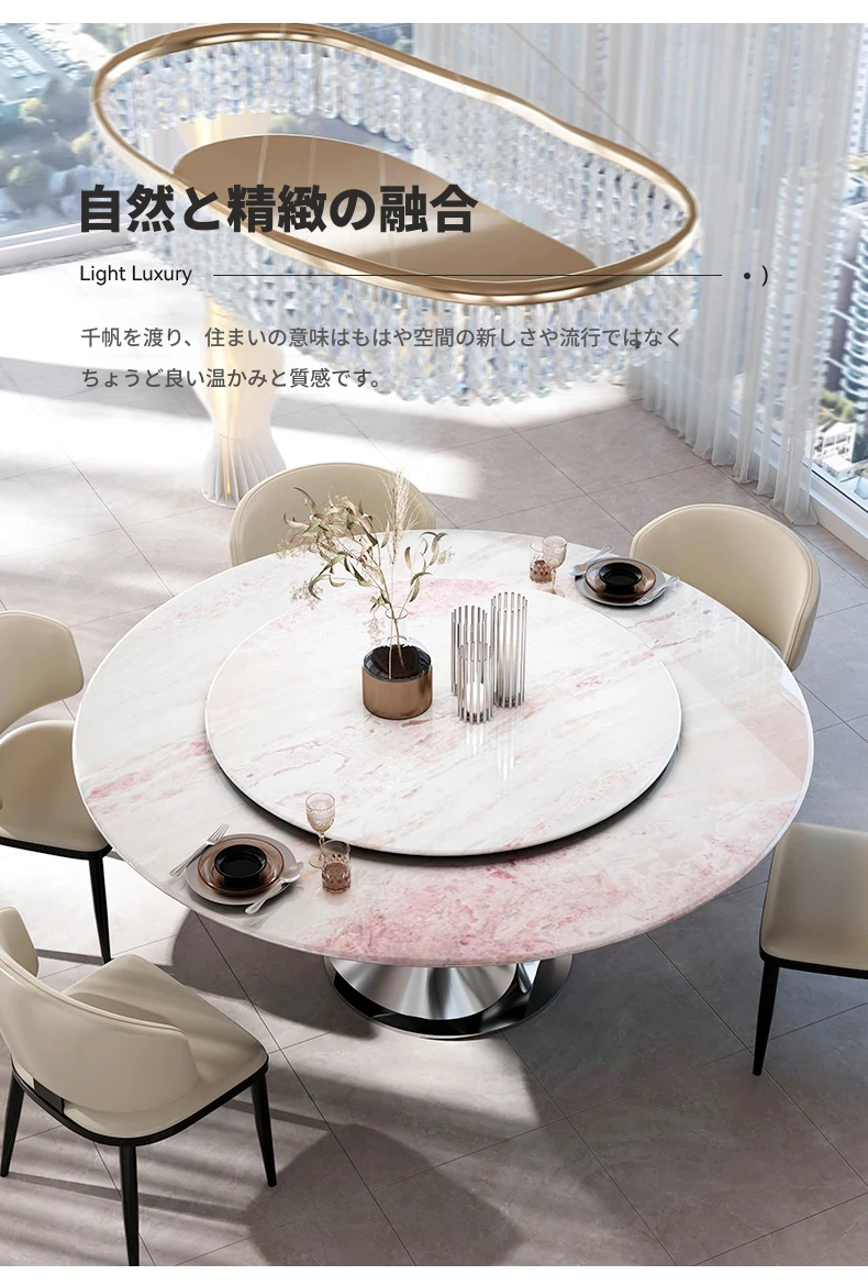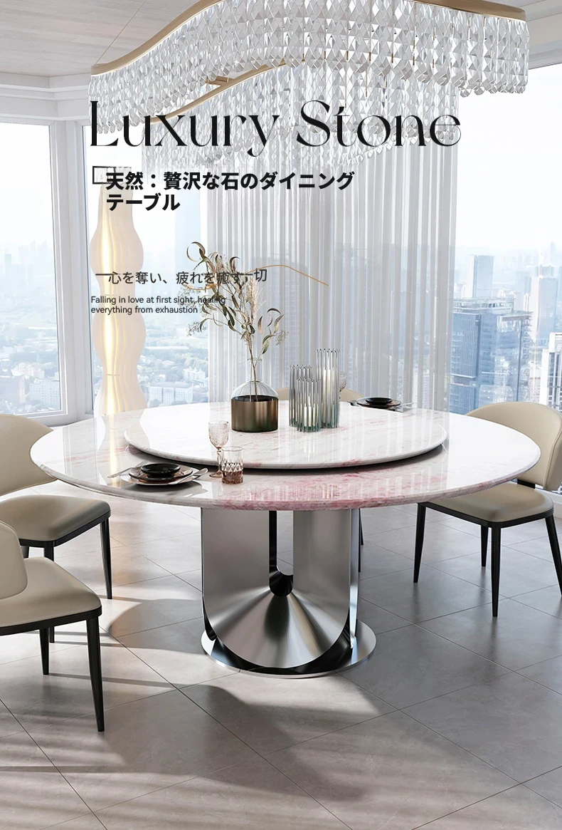 1.8メートルの円形テーブル+120CMの回転盤【天然ラグジュアリーストーンローズレインボー】 【偽造品は10倍返し】