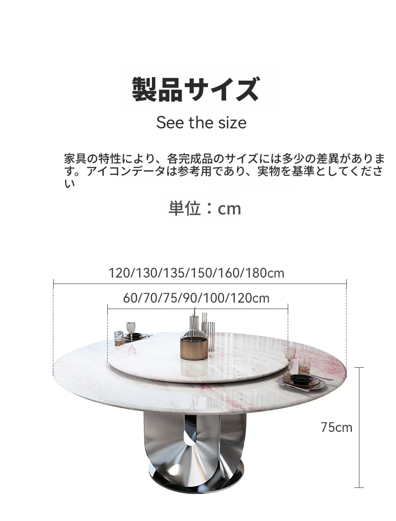 1.35メートルのダイニングテーブル+8椅子【75CMの回転盤付き】 【偽造品は10倍返し】