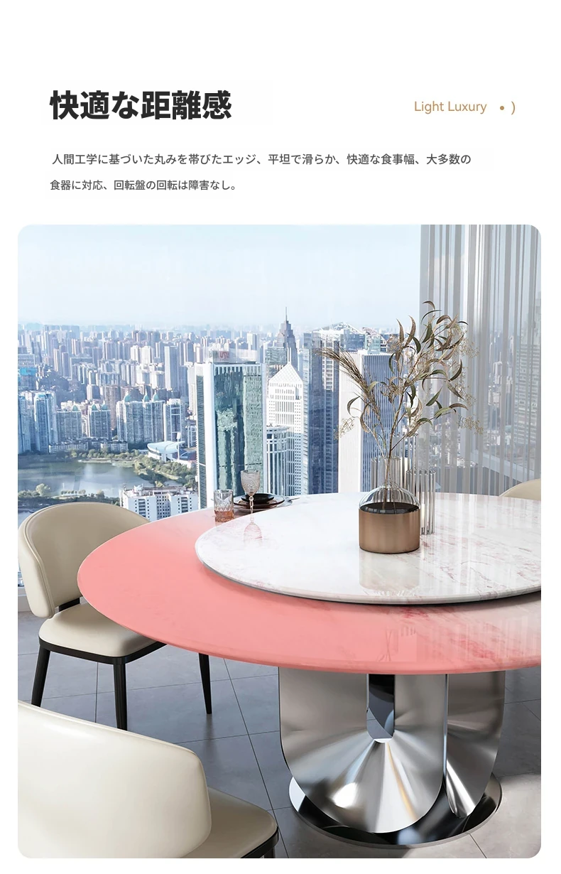 1.3メートルの円形テーブル+70CMの回転盤【天然ラグジュアリーストーンローズレインボー】 【偽造品は10倍返し】