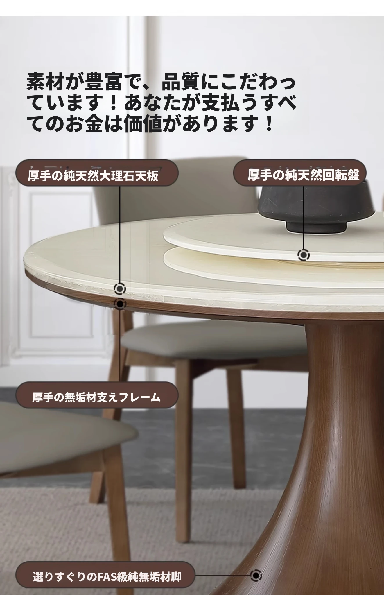 1.35メートル回転盤付き【本物の天然大理石面】