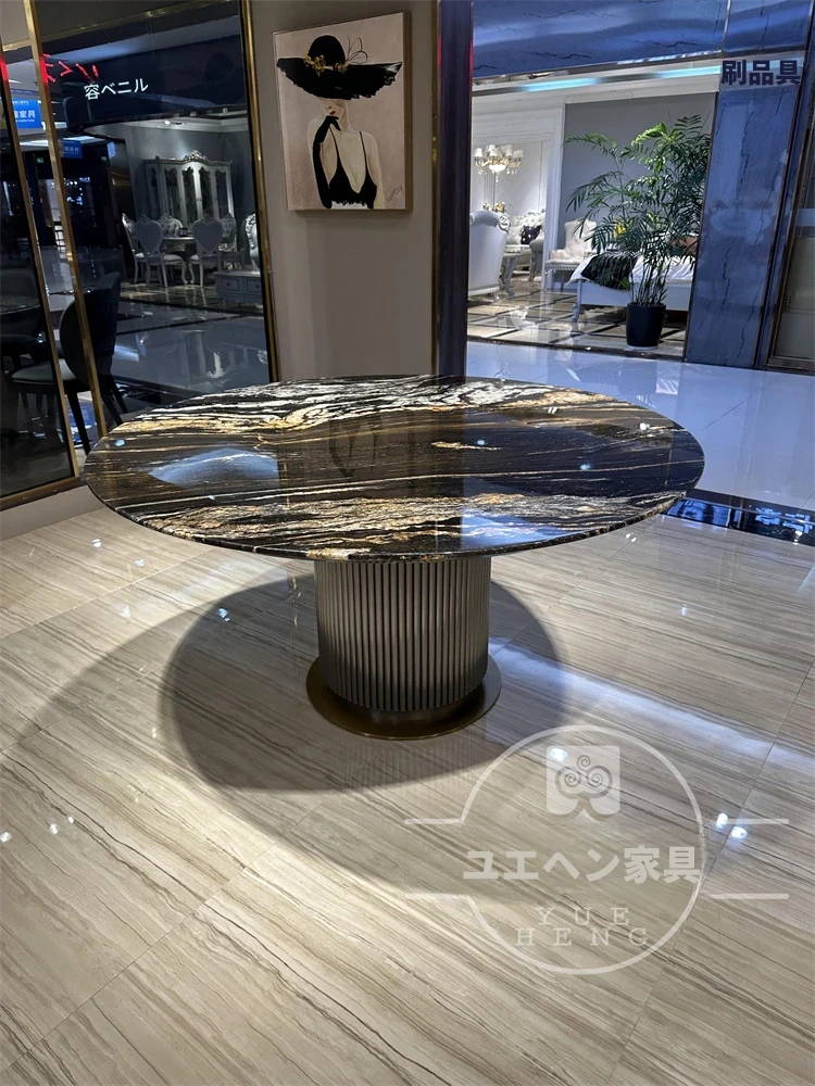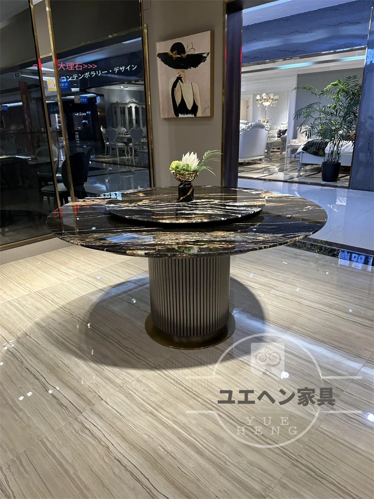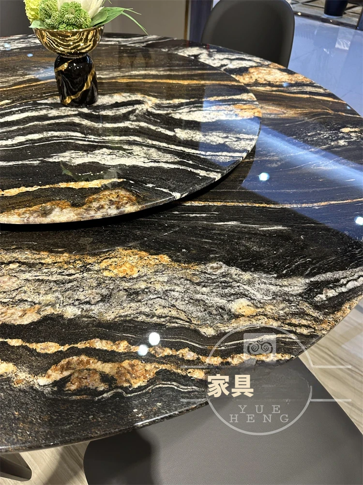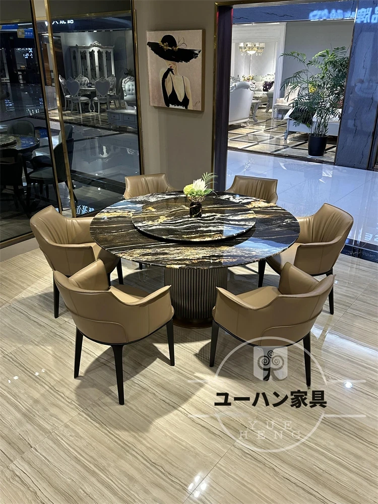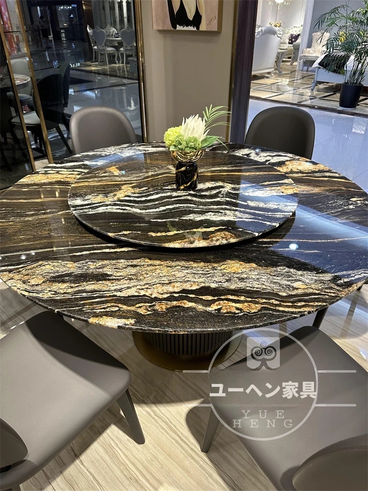輸入されたゴールドシルク一卓六椅1.8メートルテーブル(1.2メートル回転付き) 第三世代アップグレード版