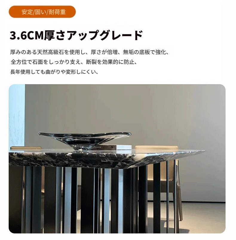180*90CMダイニングテーブル【輸入ラグジュアリー石・ブルガリブラック】