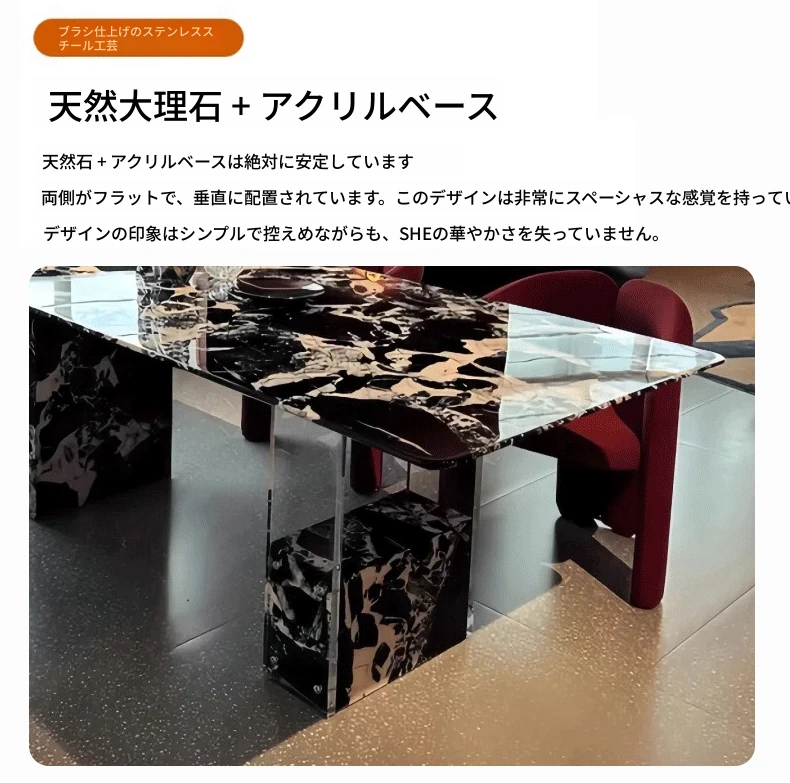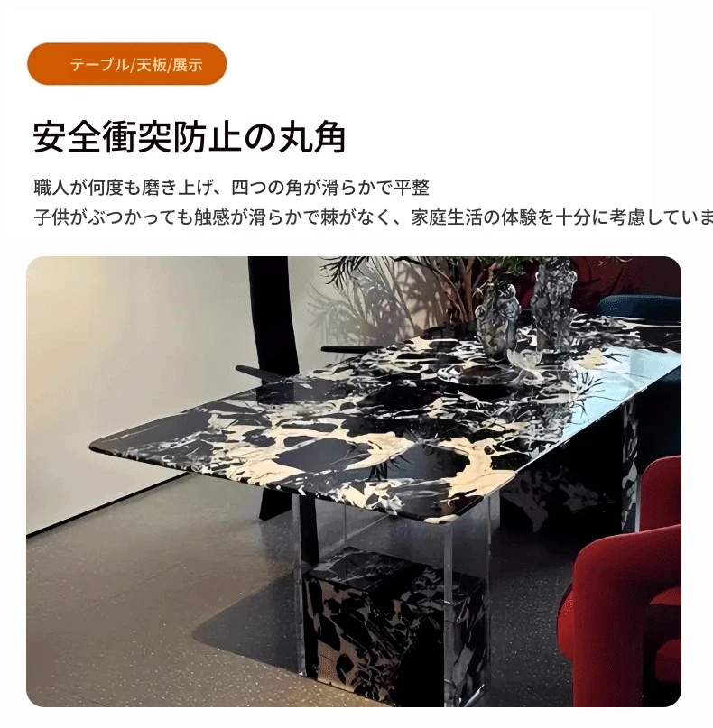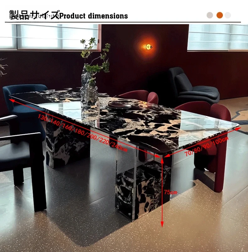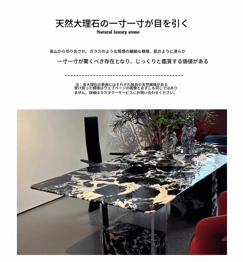 260*100CMダイニングテーブル【輸入ラグジュアリー石・ブルガリブラック】