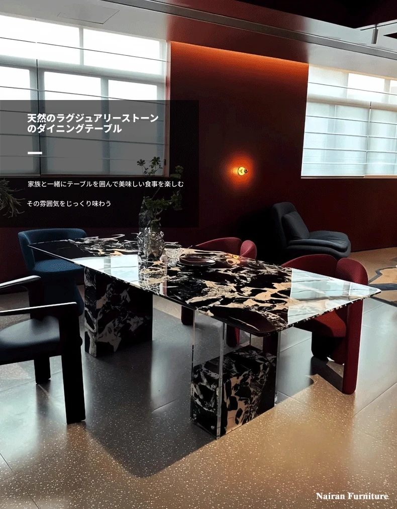 240*100CMダイニングテーブル【輸入ラグジュアリー石・ブルガリブラック】