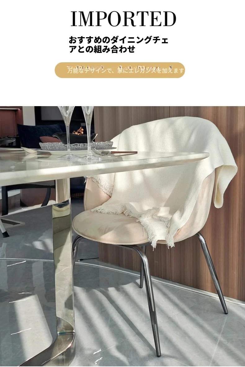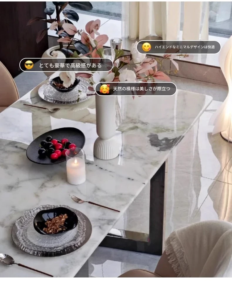 220*100CMダイニングテーブル+8椅子/輸入ラグジュアリーストーンフィンディホワイト