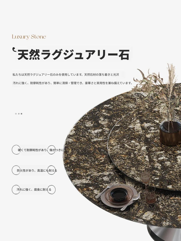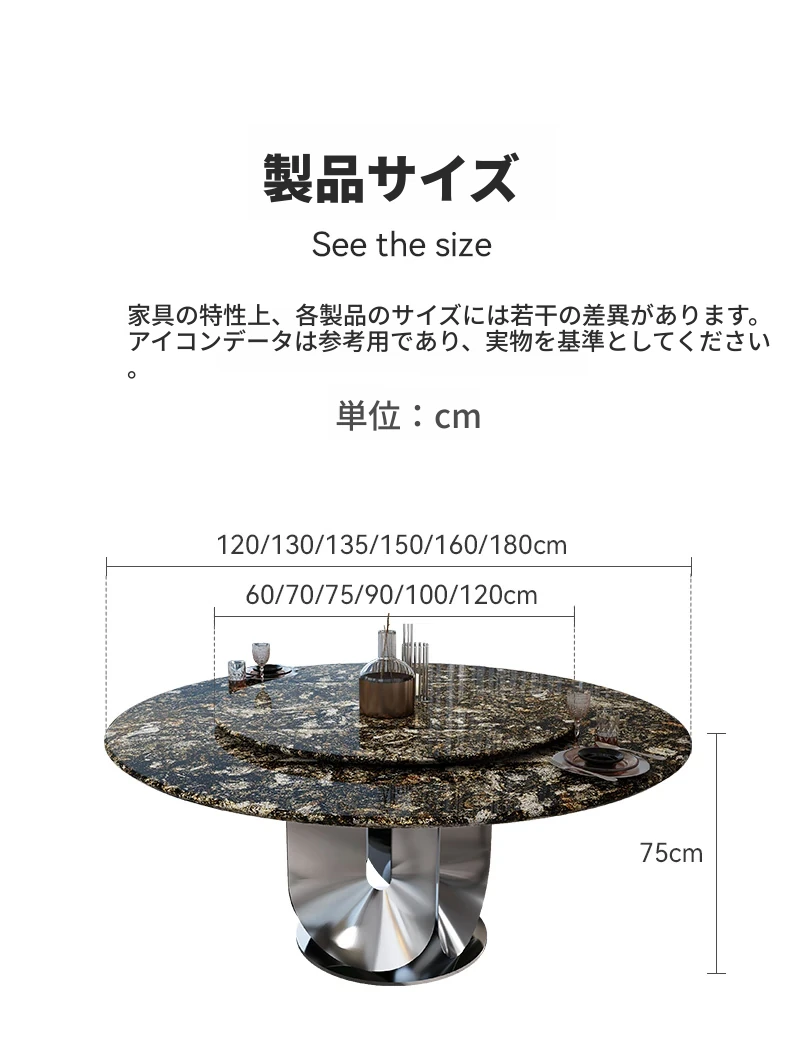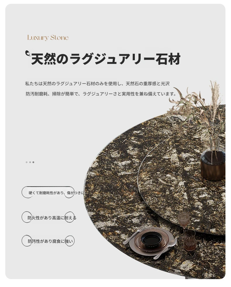 1.2メートルの円卓+60CM回転盤【天然ラグジュアリー石プラチナダイヤ】 【偽物は10倍返し】