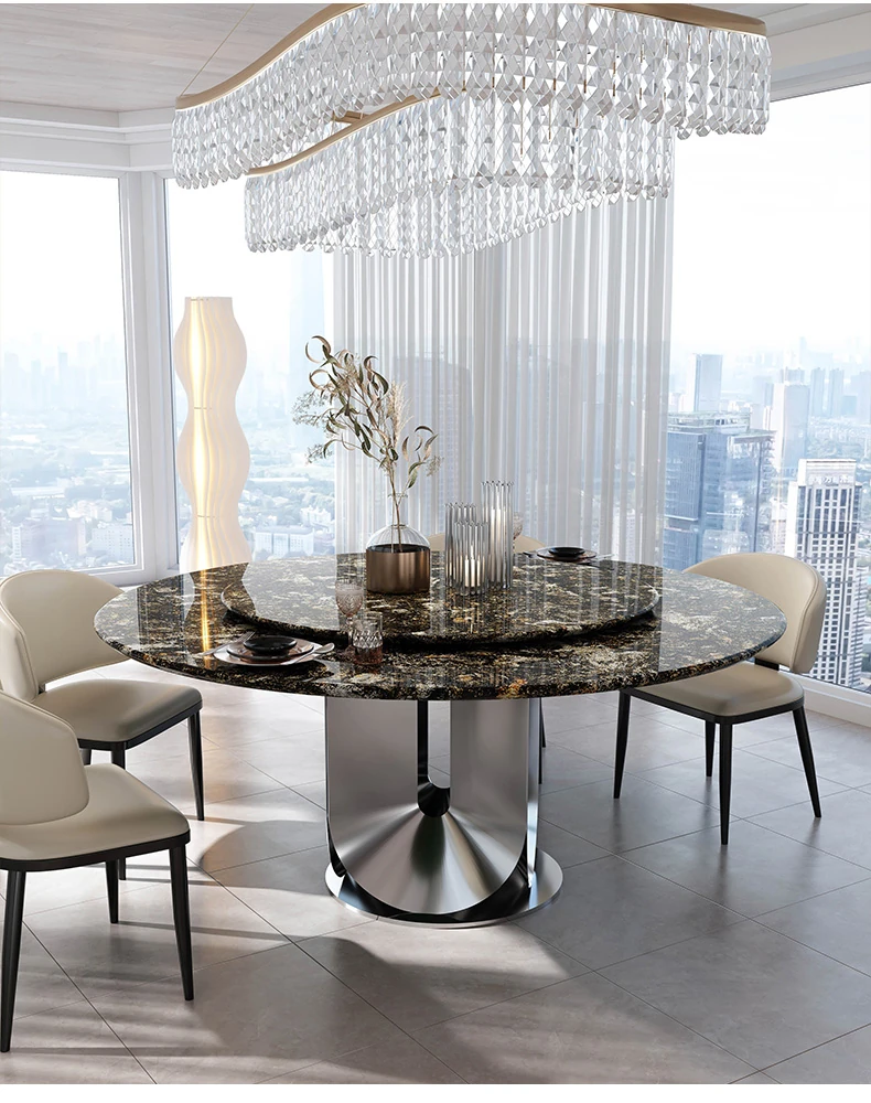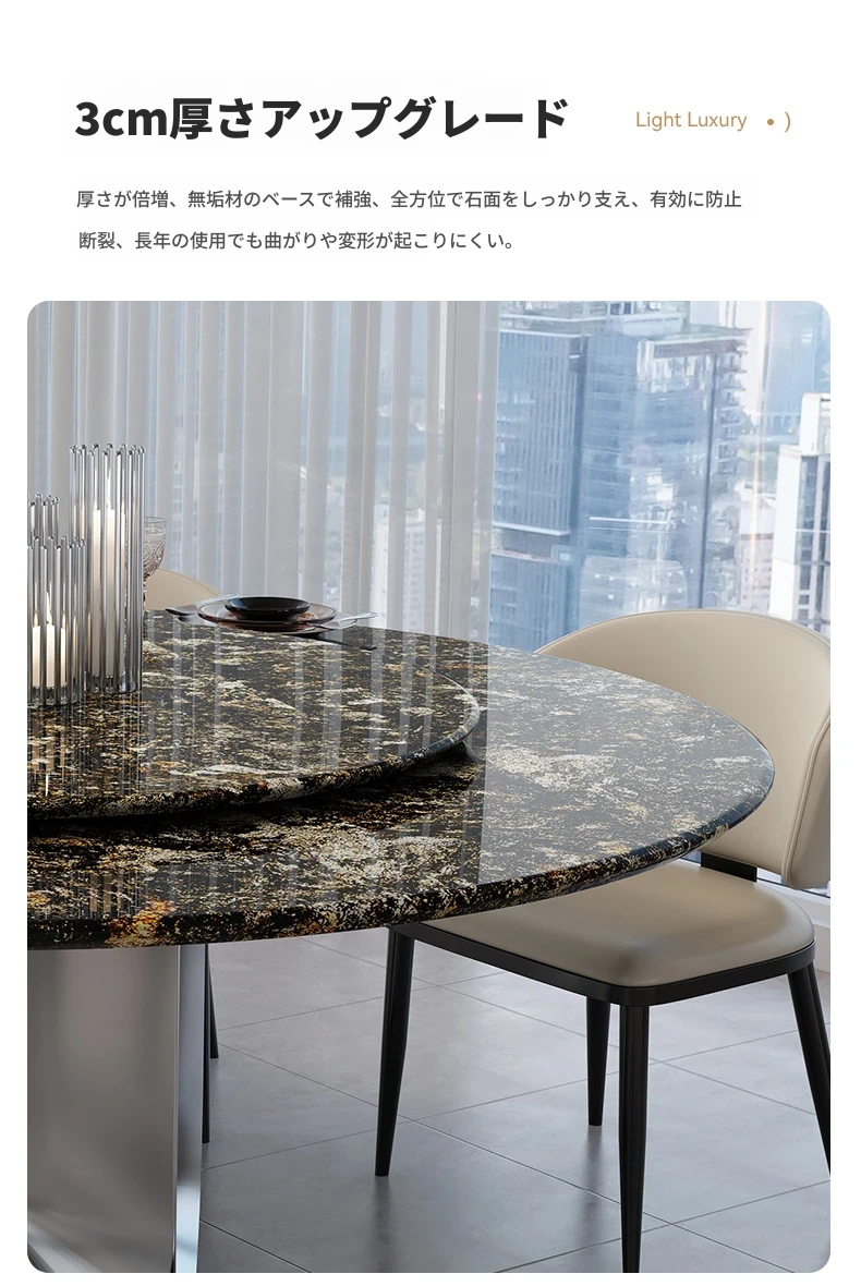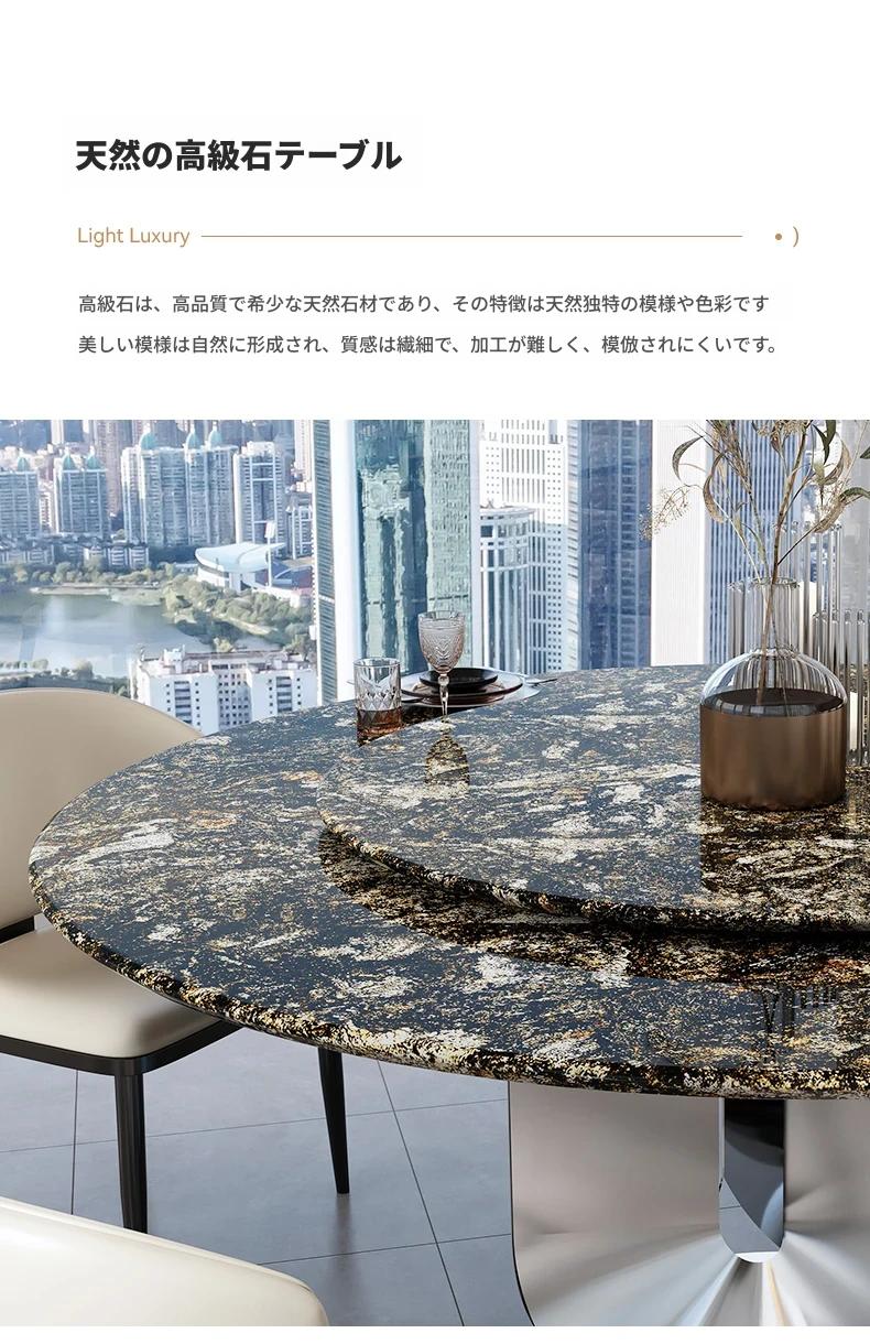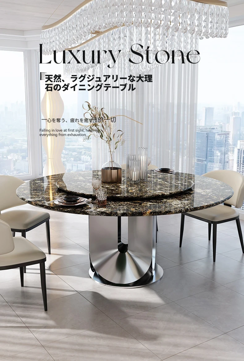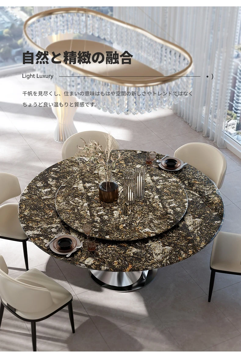 1.5メートルの円卓+90CM回転盤【天然ラグジュアリー石プラチナダイヤ】 【偽物は10倍返し】