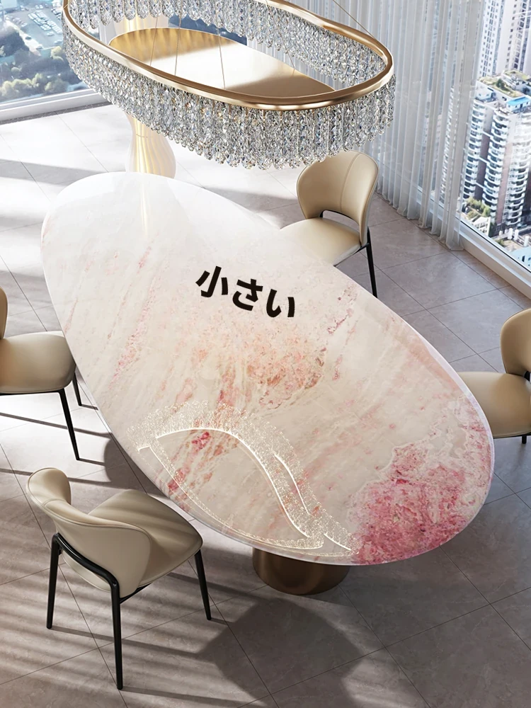 220*110CMテーブル+8椅子/天然ラグジュアリーエメラルドレインボー