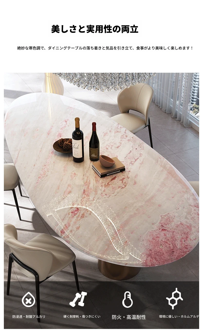 180*90CMテーブル+6椅子/天然ラグジュアリーエメラルドレインボー