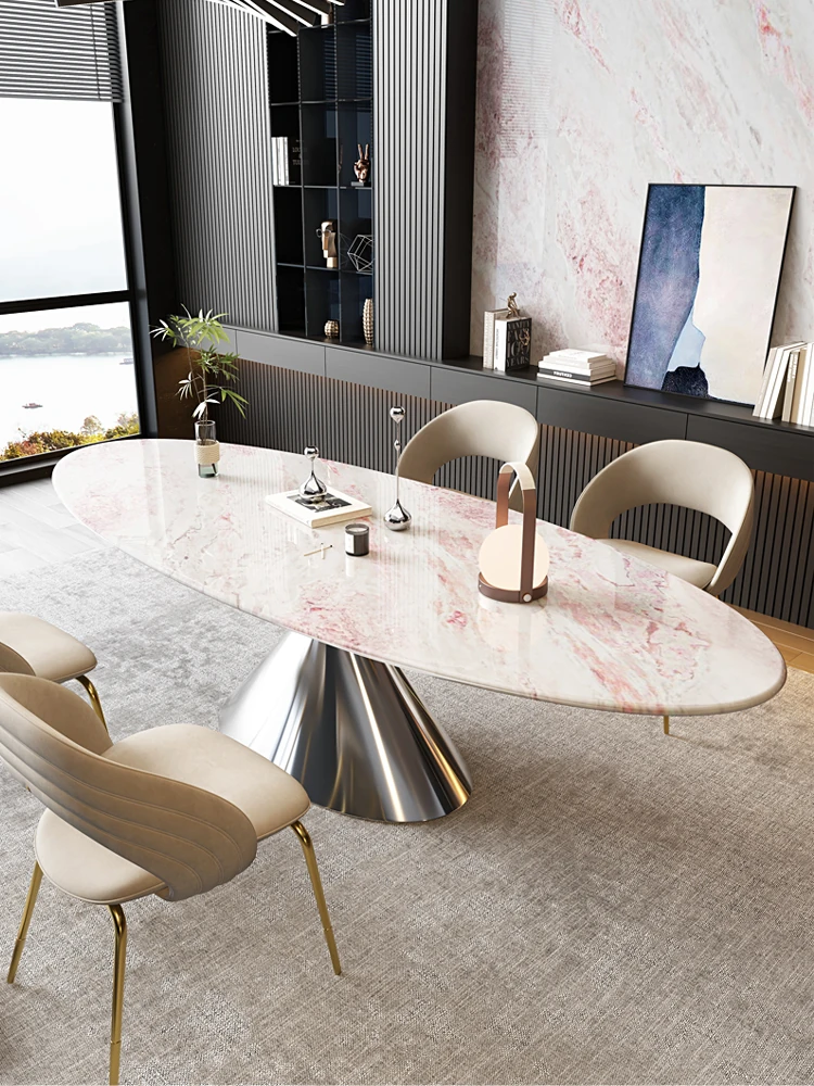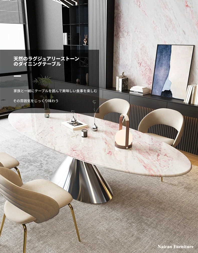 240*100CMダイニングテーブル+8椅子【輸入ラグジュアリー石バラ虹】
