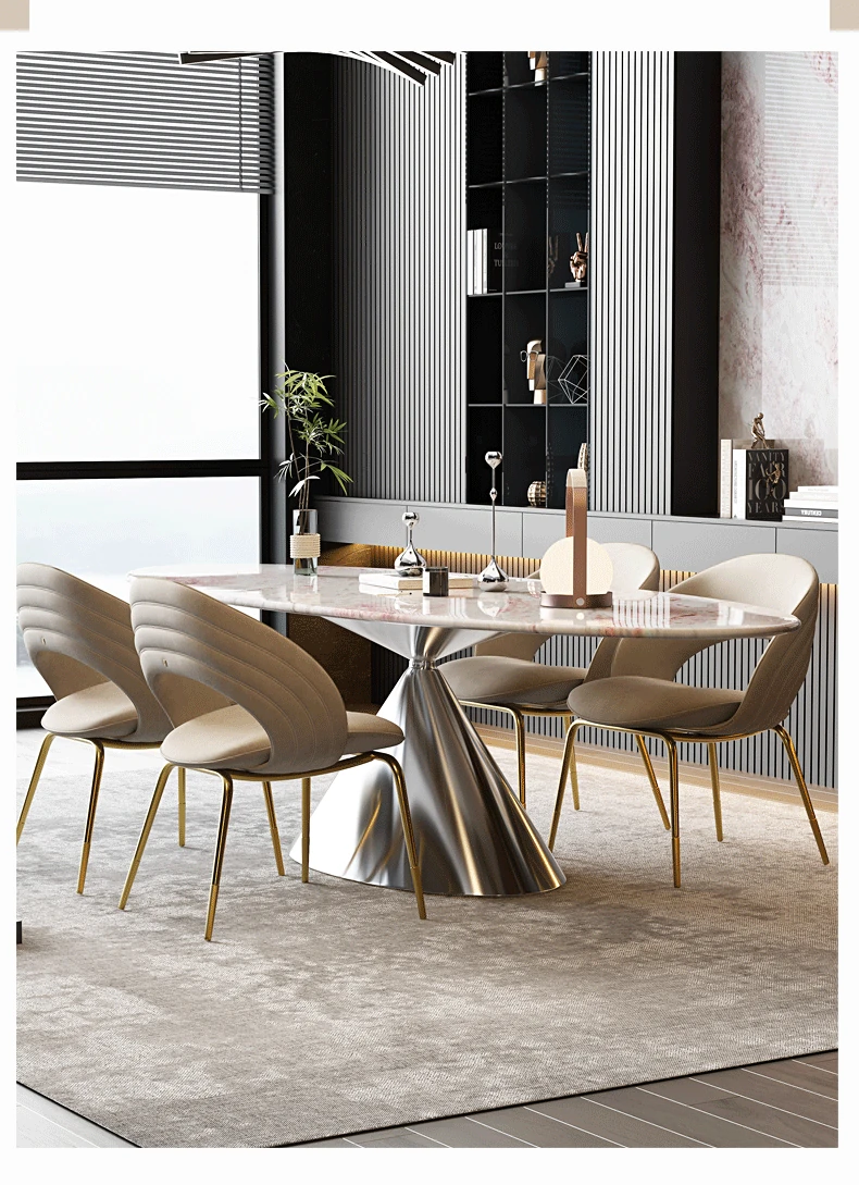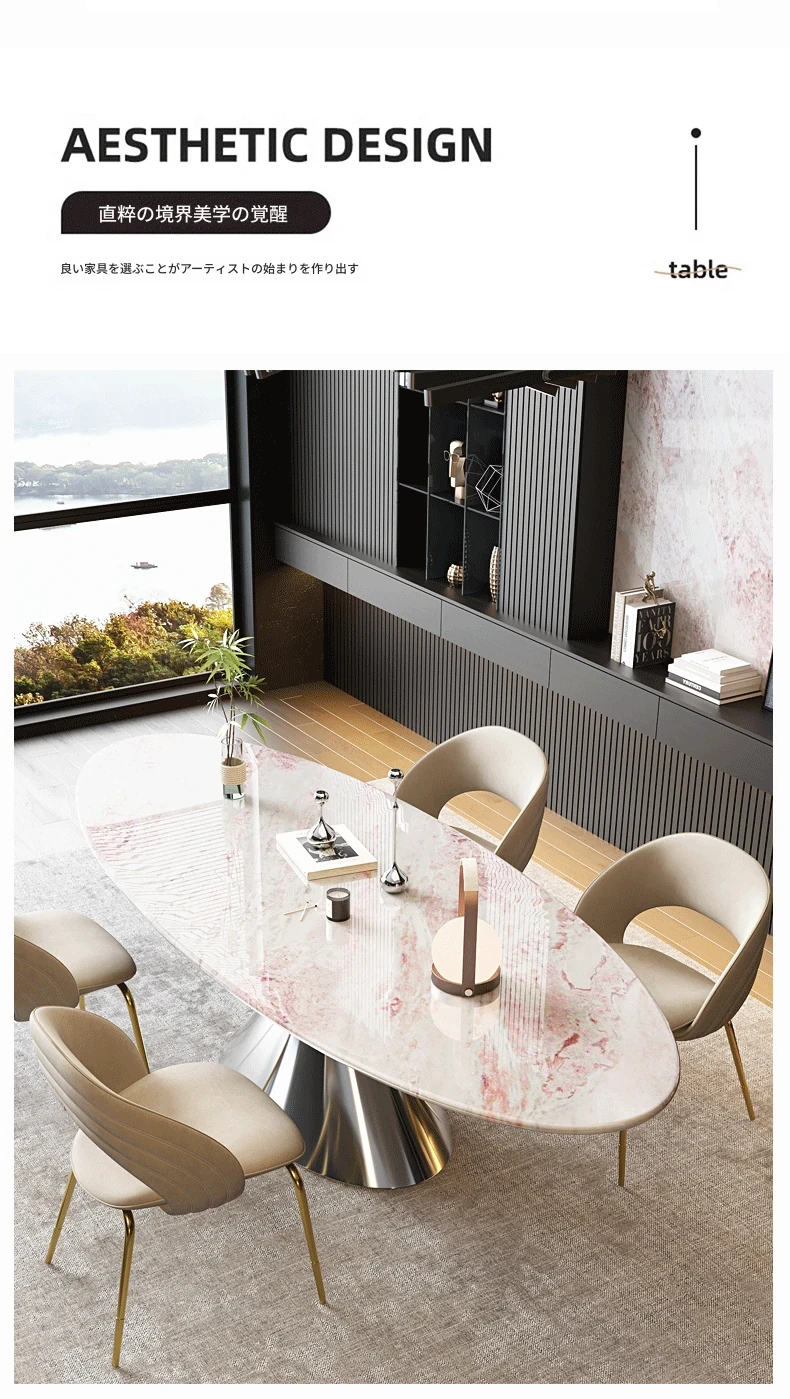 240*100CMダイニングテーブル+6椅子【輸入ラグジュアリー石バラ虹】