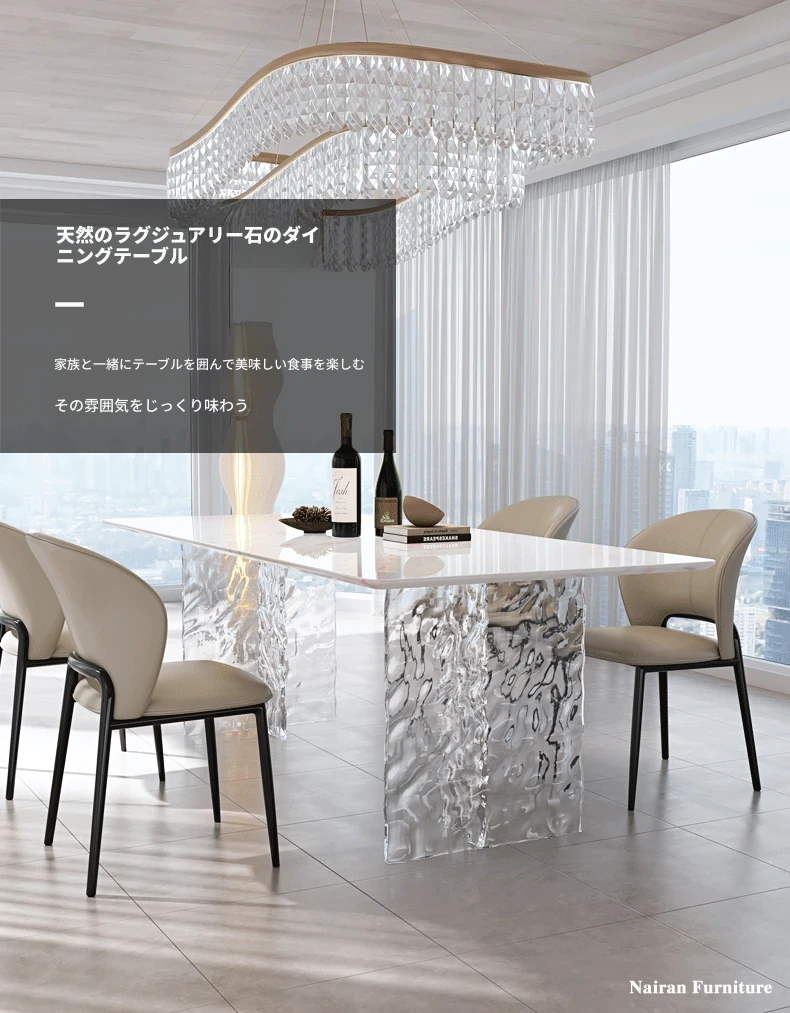 240*100CMダイニングテーブル+8椅子【輸入高級石ローズレインボー】 【偽物は十倍賠償】