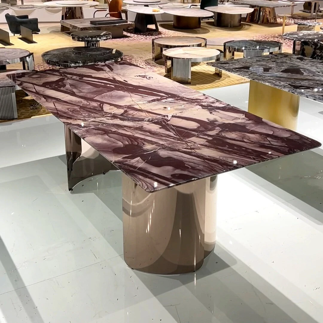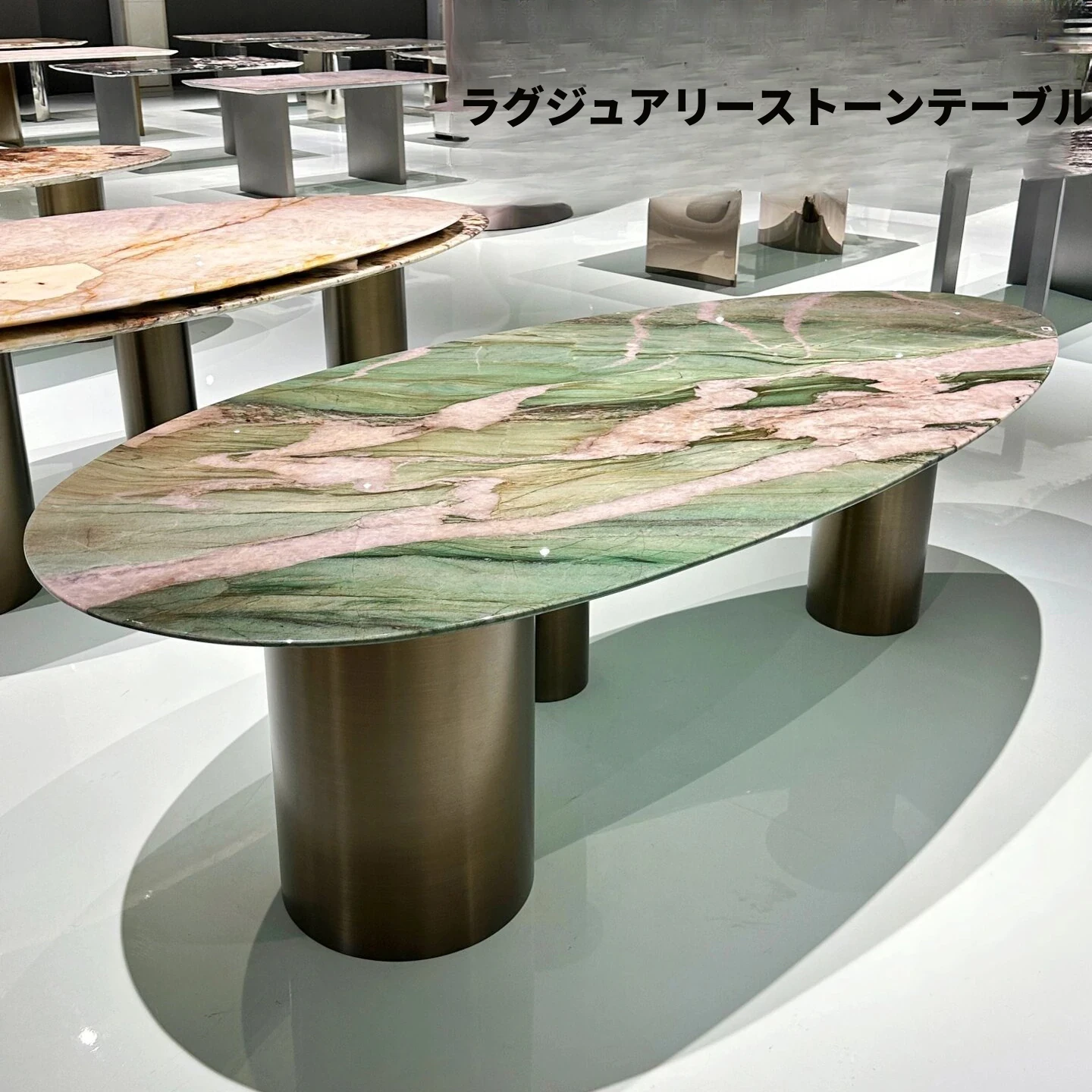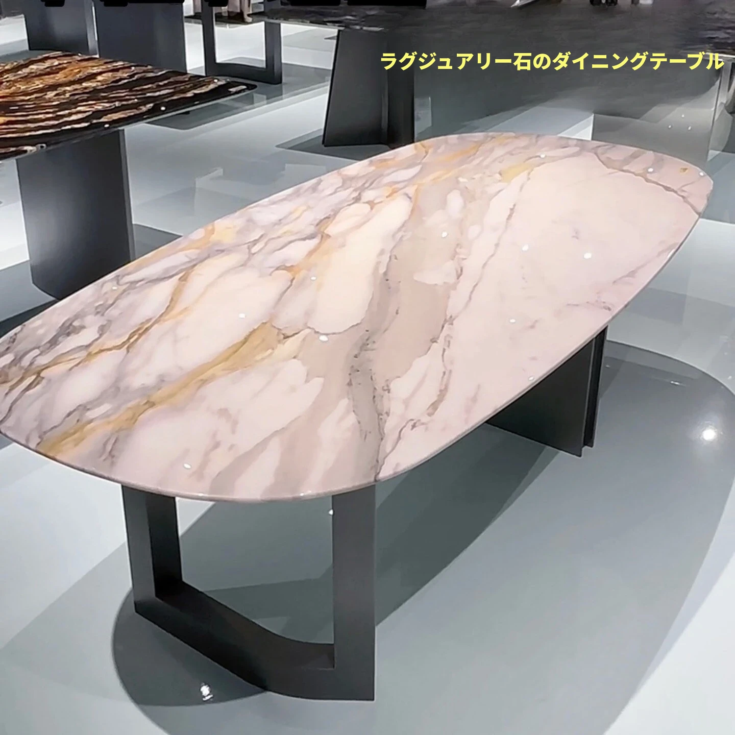 輸入天然大理石の輸入品、ベネチアブラウンの高級ダイニングテーブル。デザイナーが手掛けた高級別荘向け、洗練されたイタリアンラグジュアリーの食卓を演出します。上質な素材で特別なひとときをお楽しみください。