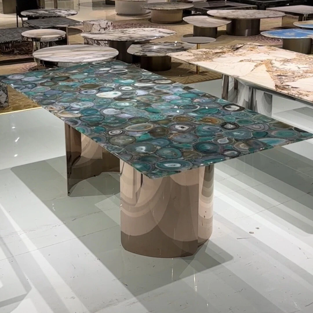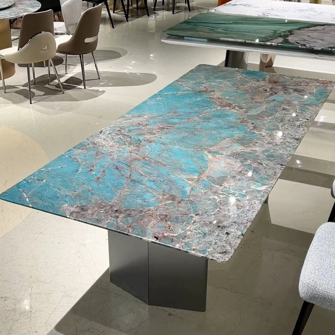 WARMカリーアイスジェード豪華石製ダイニングテーブル|輸入軽奢天然大理石使用|佛山製長方形高級食卓|洗練されたデザインで特別なひとときを演出!