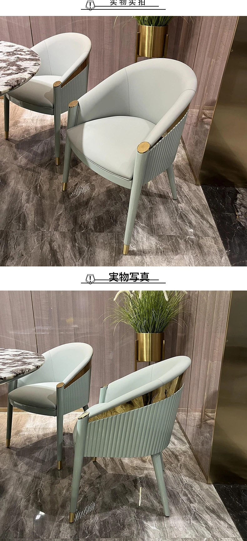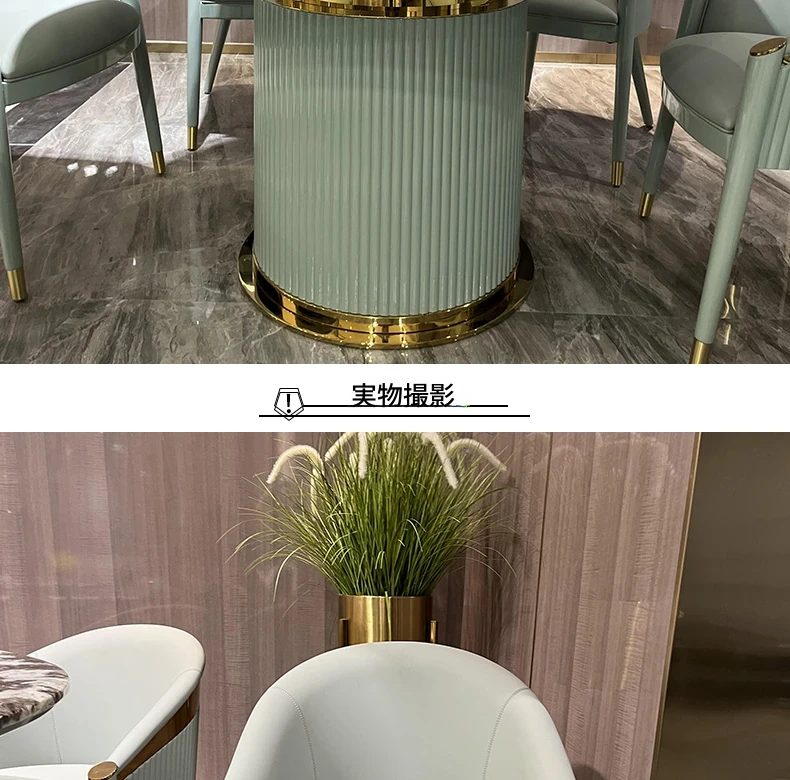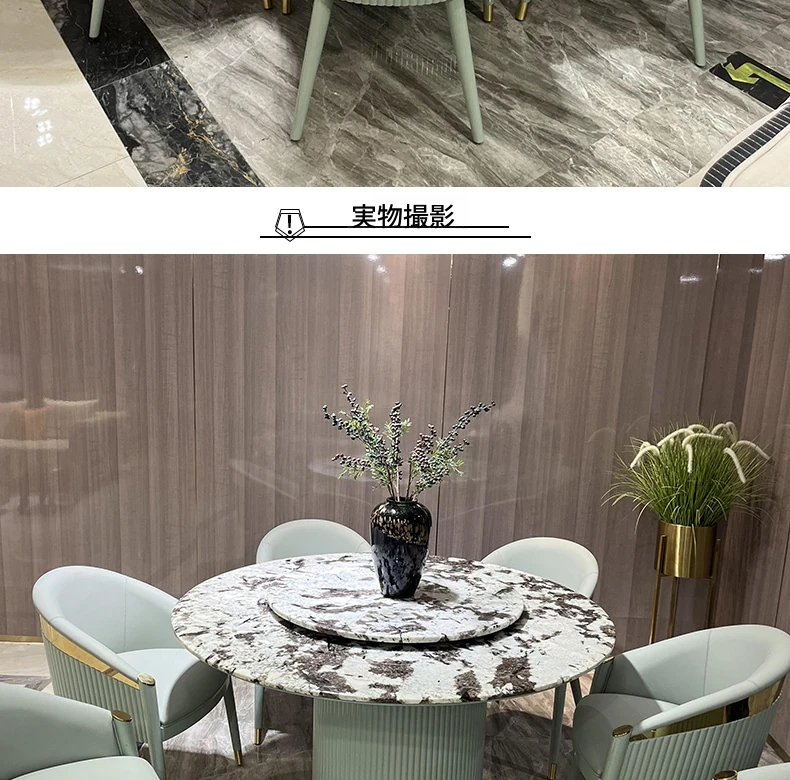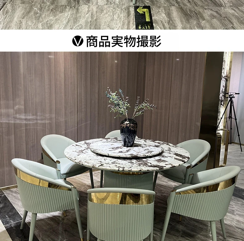 イタリアンラグジュアリー大理石円卓セット - ヴィラスイート向け、シンプルで洗練された港式ダイニングテーブルと椅子の組み合わせ、スタイリッシュなモデルルームにぴったり!