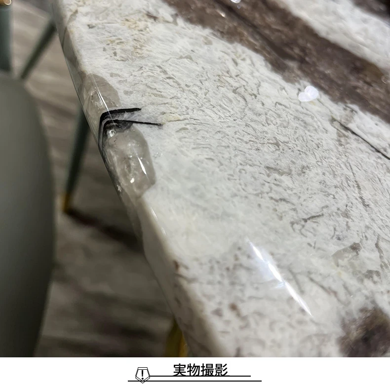 阅恒家具の天然大理石を使用した高級フィンディホワイトロングテーブル - 新しいデザインの無垢材とステンレス脚の長方形テーブル、家庭に最適!