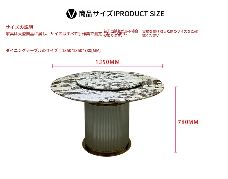 阅恒インポート高級石材 天然大理石ラウンドダイニングテーブル サンプルルーム・モデルハウス・自宅建築・別荘用 大型円卓で特別なひとときを!