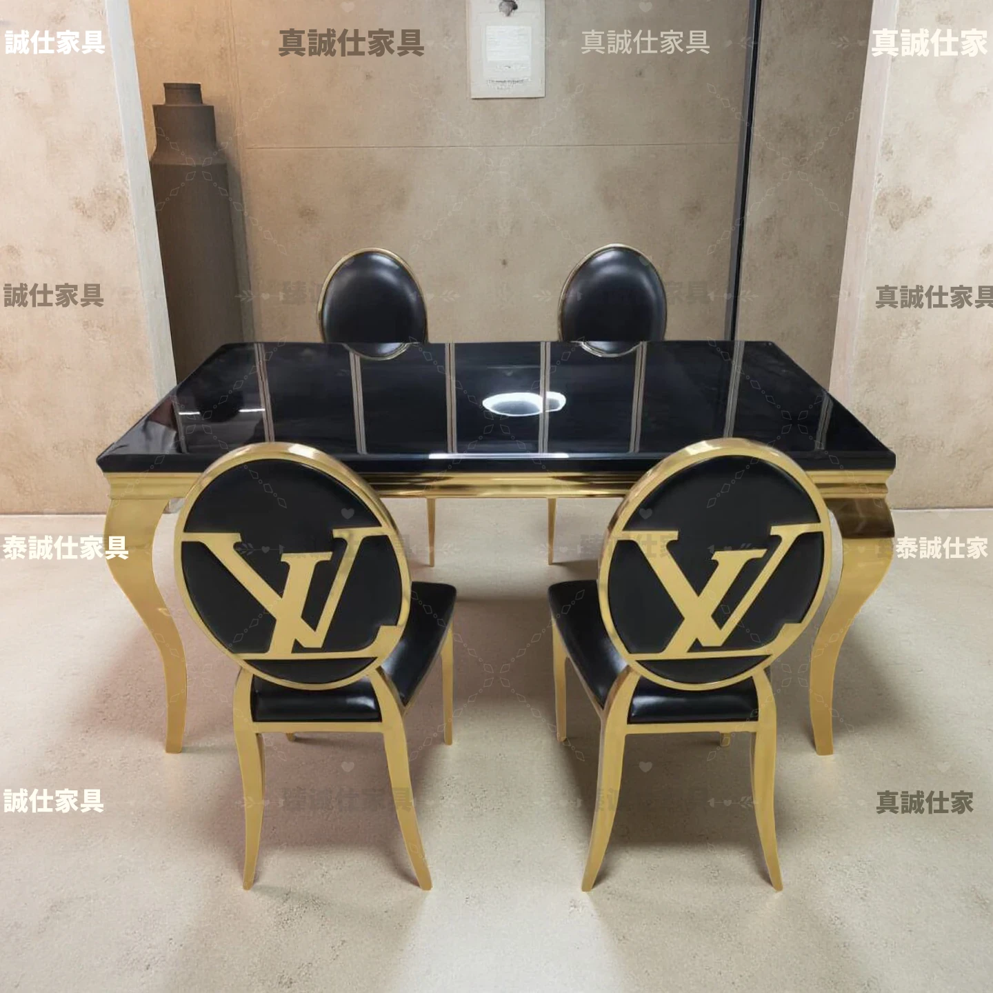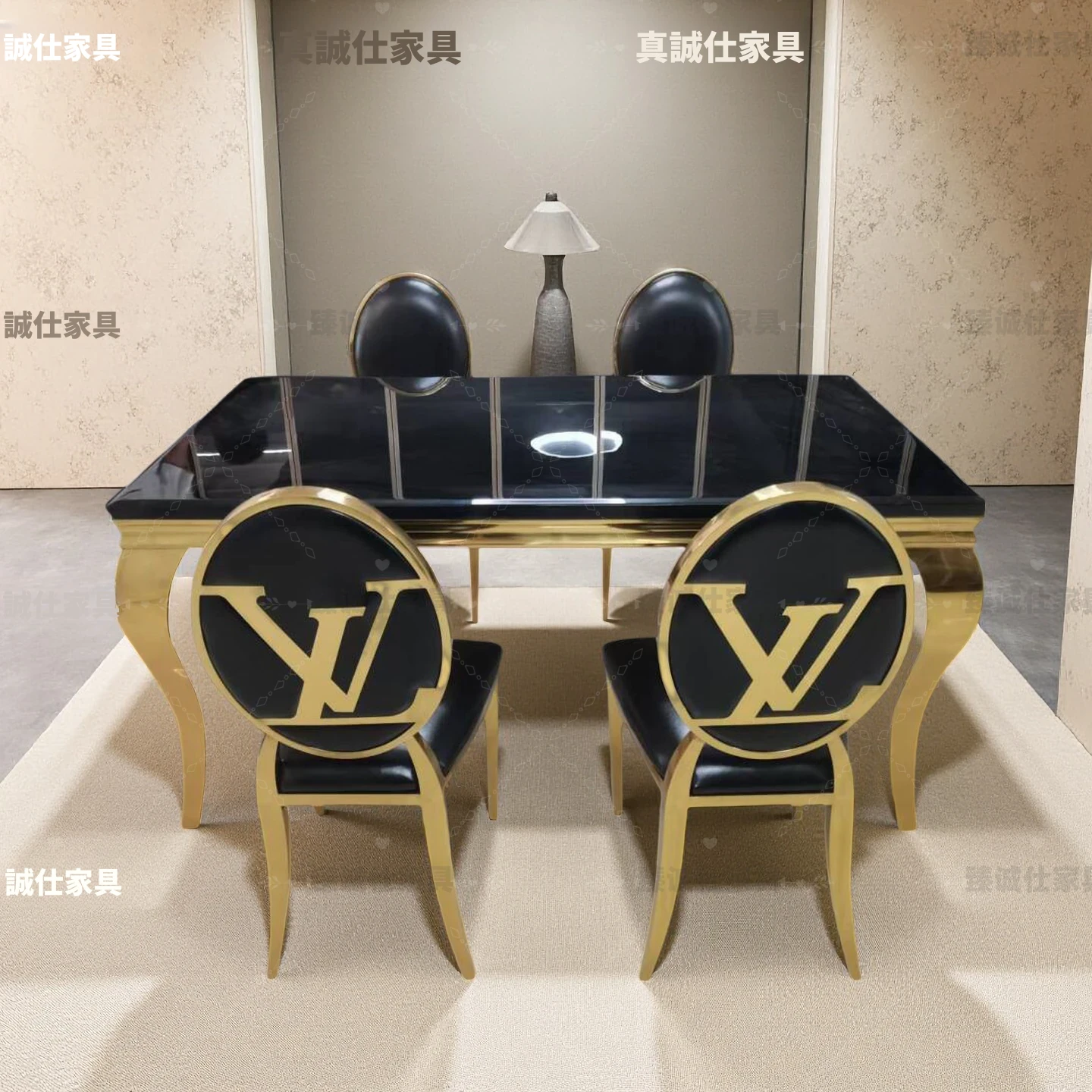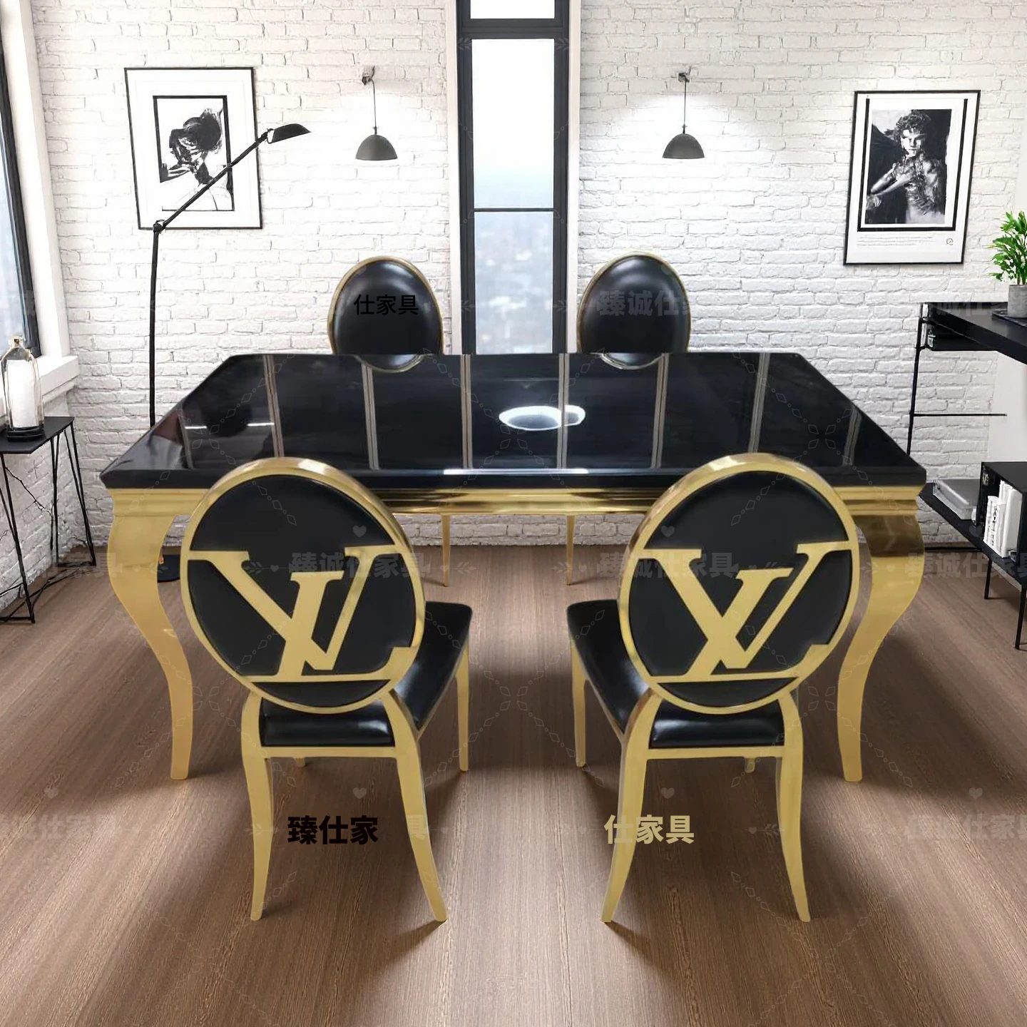 イタリアンラグジュアリー ステンレススチールと大理石のモダンなダイニングテーブルセット - シンプルで洗練されたデザイン、小さな部屋にもぴったりな長方形テーブル!