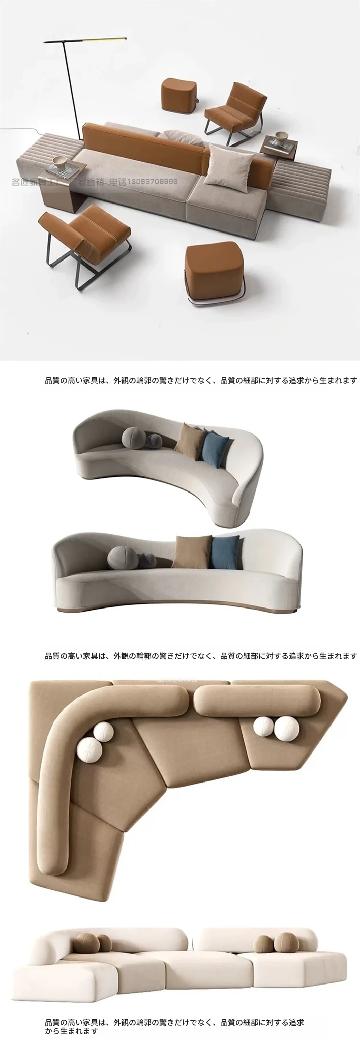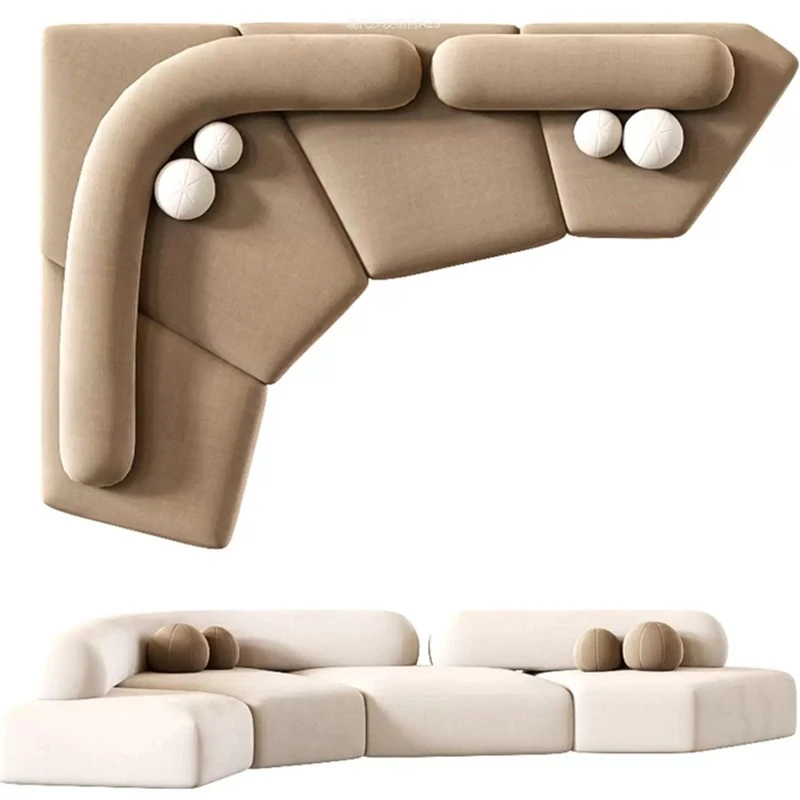 イタリアンミニマリストファブリックソファセット|モダンでシンプルなリビングに最適!広々とした角座席デザインで、別荘や大平面にもぴったり。デザイナーのこだわりが詰まった快適空間を実現!
