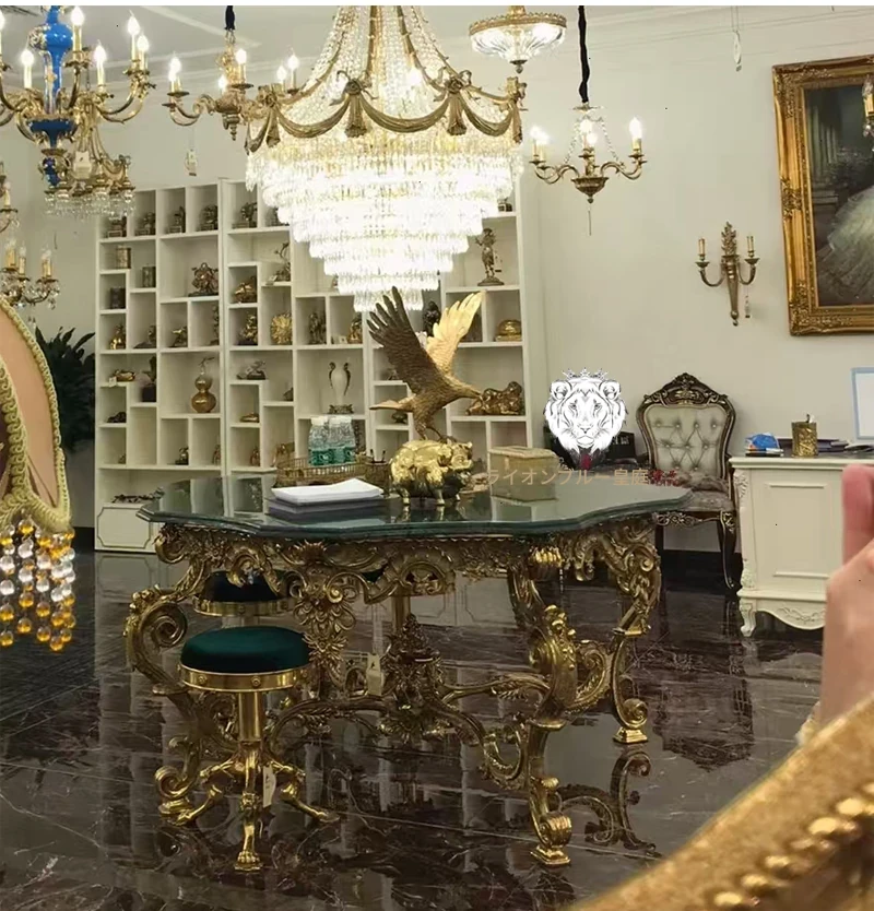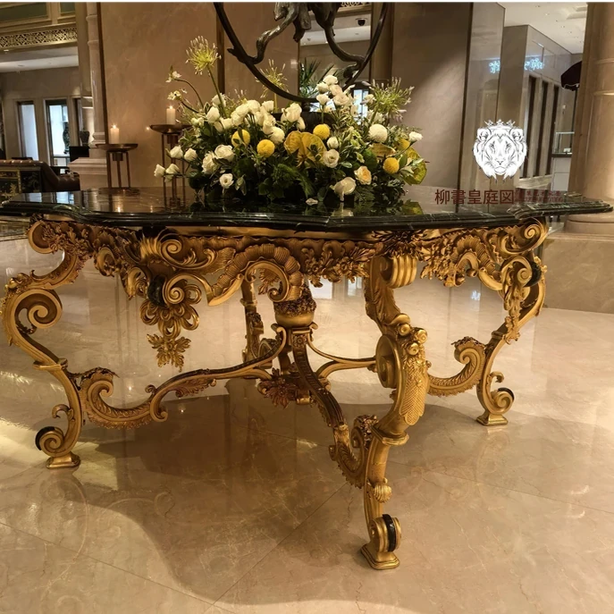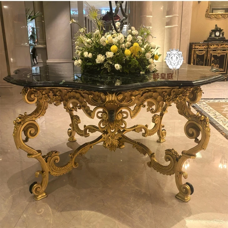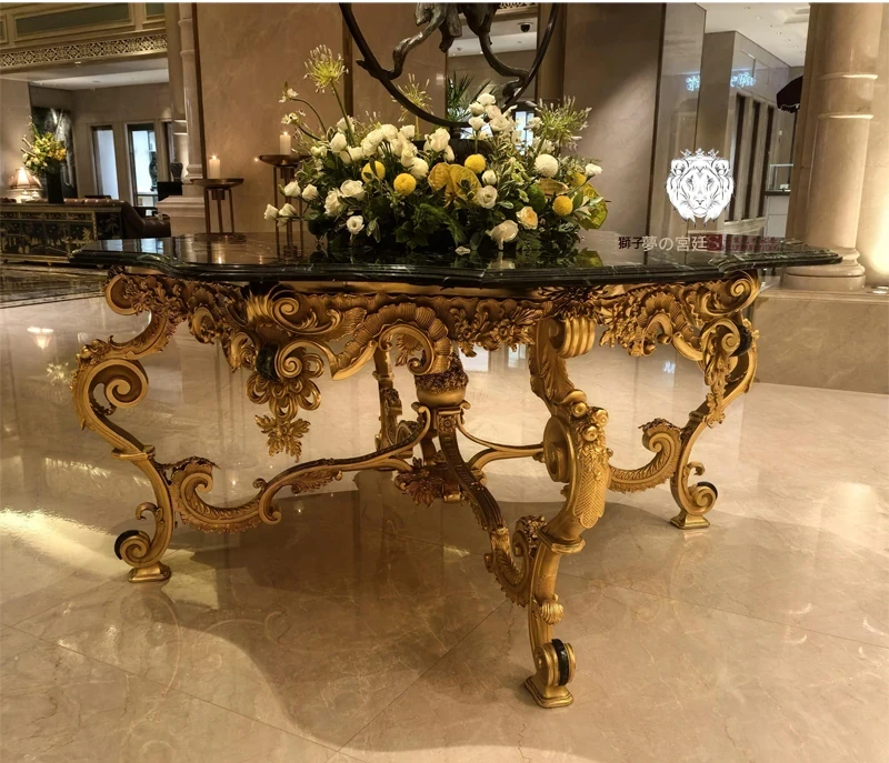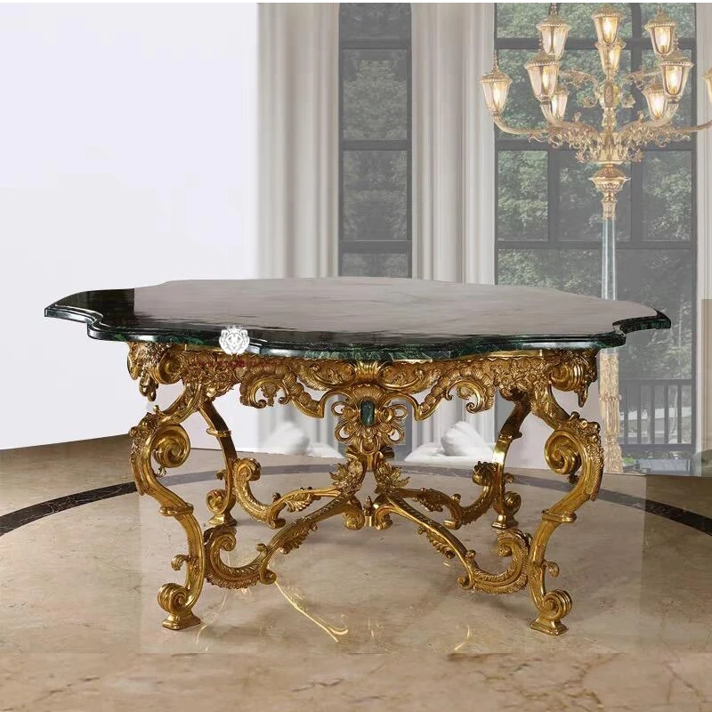 高級欧風家具「狮落皇庭」純銅彫刻フレーム天然大理石花弁形玄関テーブル&ダイニングテーブル - 優雅なデザインで、あなたの空間に洗練された美を!