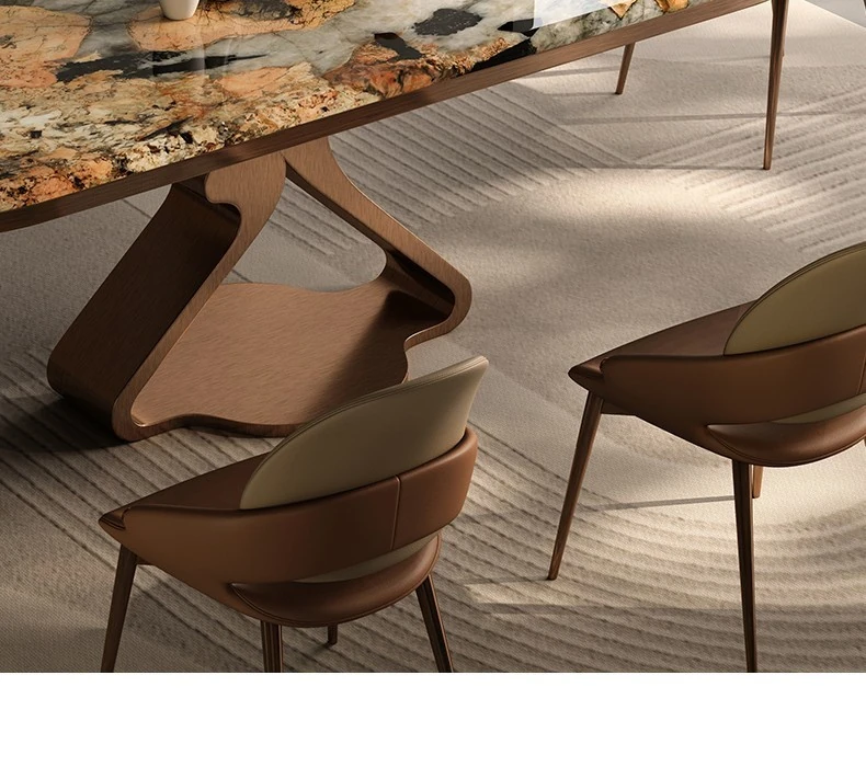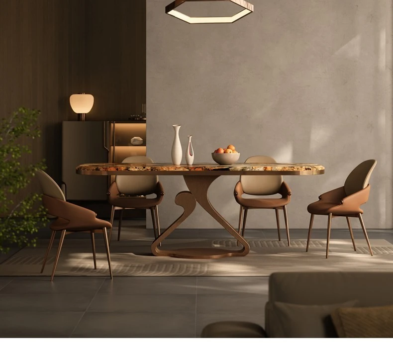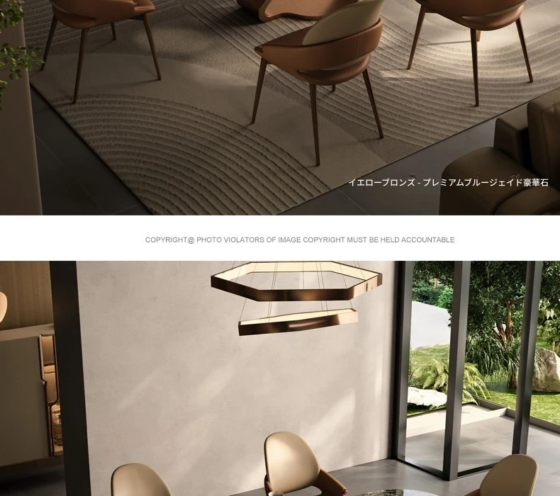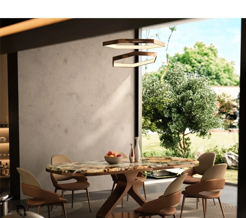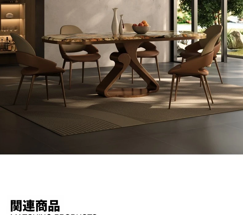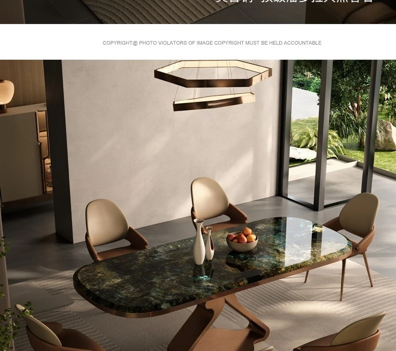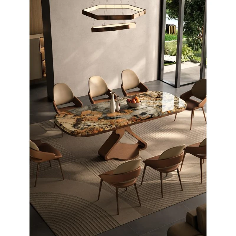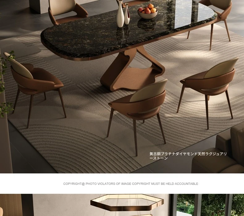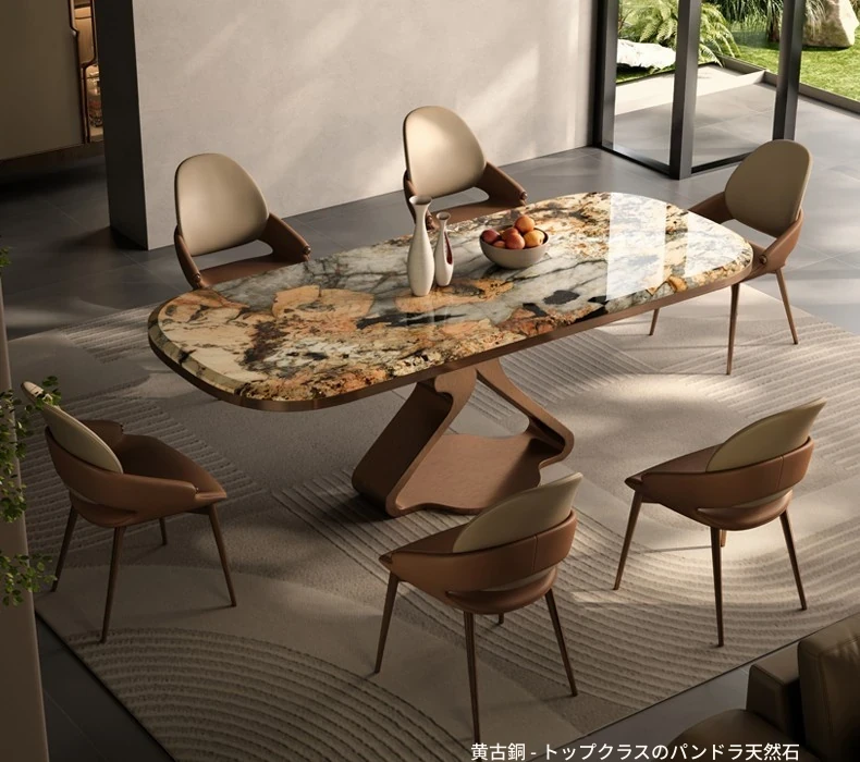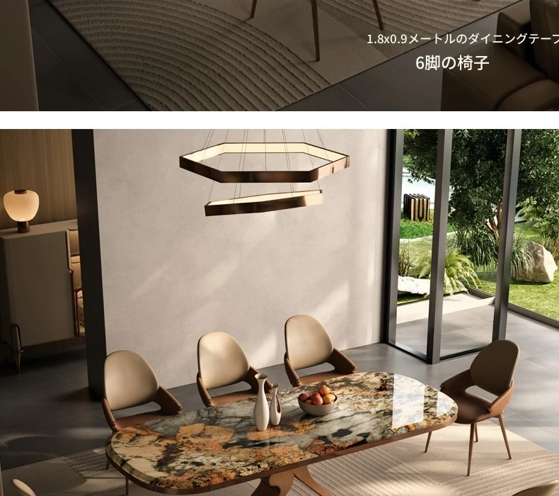 高級感あふれるモダンな長方形ダイニングテーブル - 天然大理石使用、機能性抜群の別荘向け家用テーブルで、洗練された空間を演出します!