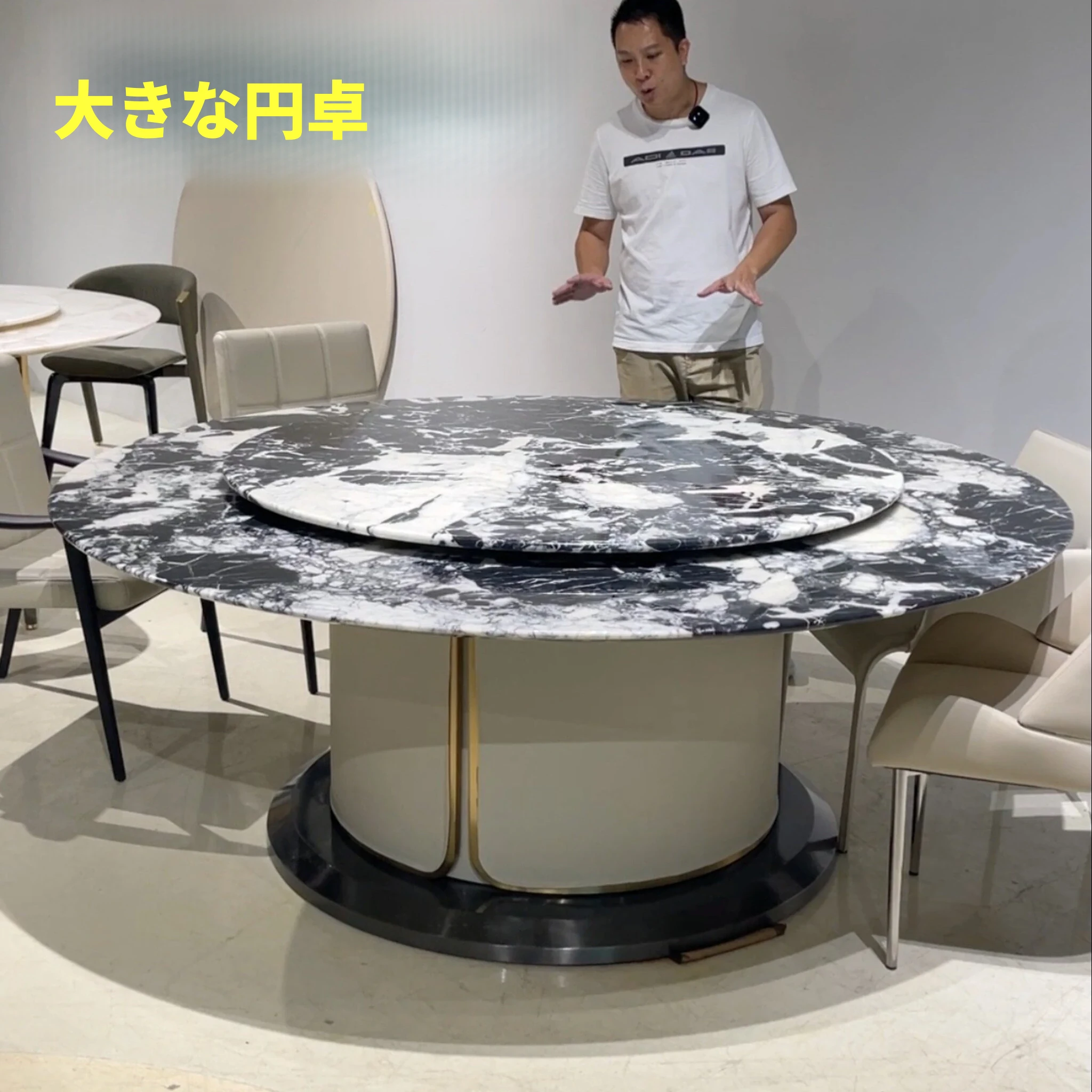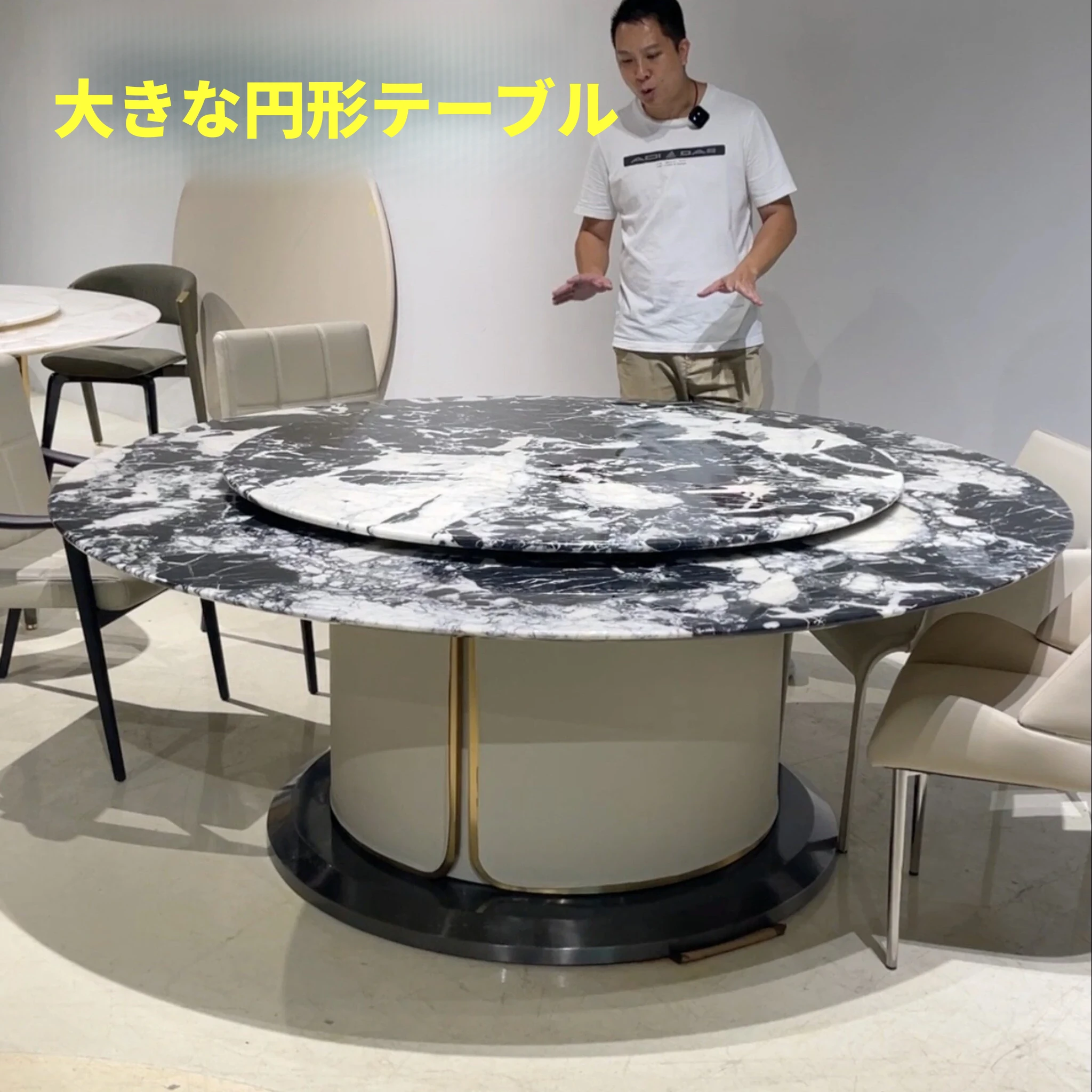 阅恒インポート高級石材 天然大理石ラウンドダイニングテーブル サンプルルーム・モデルハウス・自宅建築・別荘用 大型円卓で特別なひとときを!