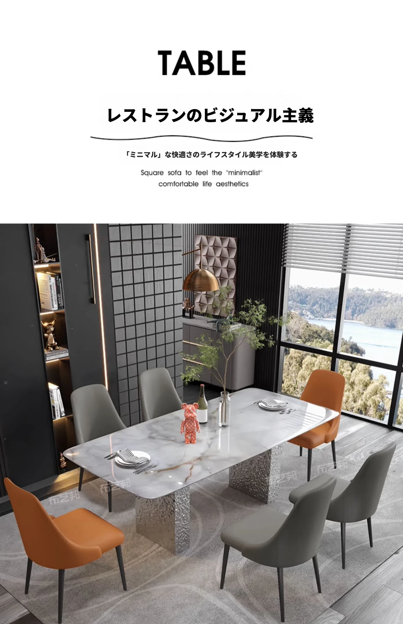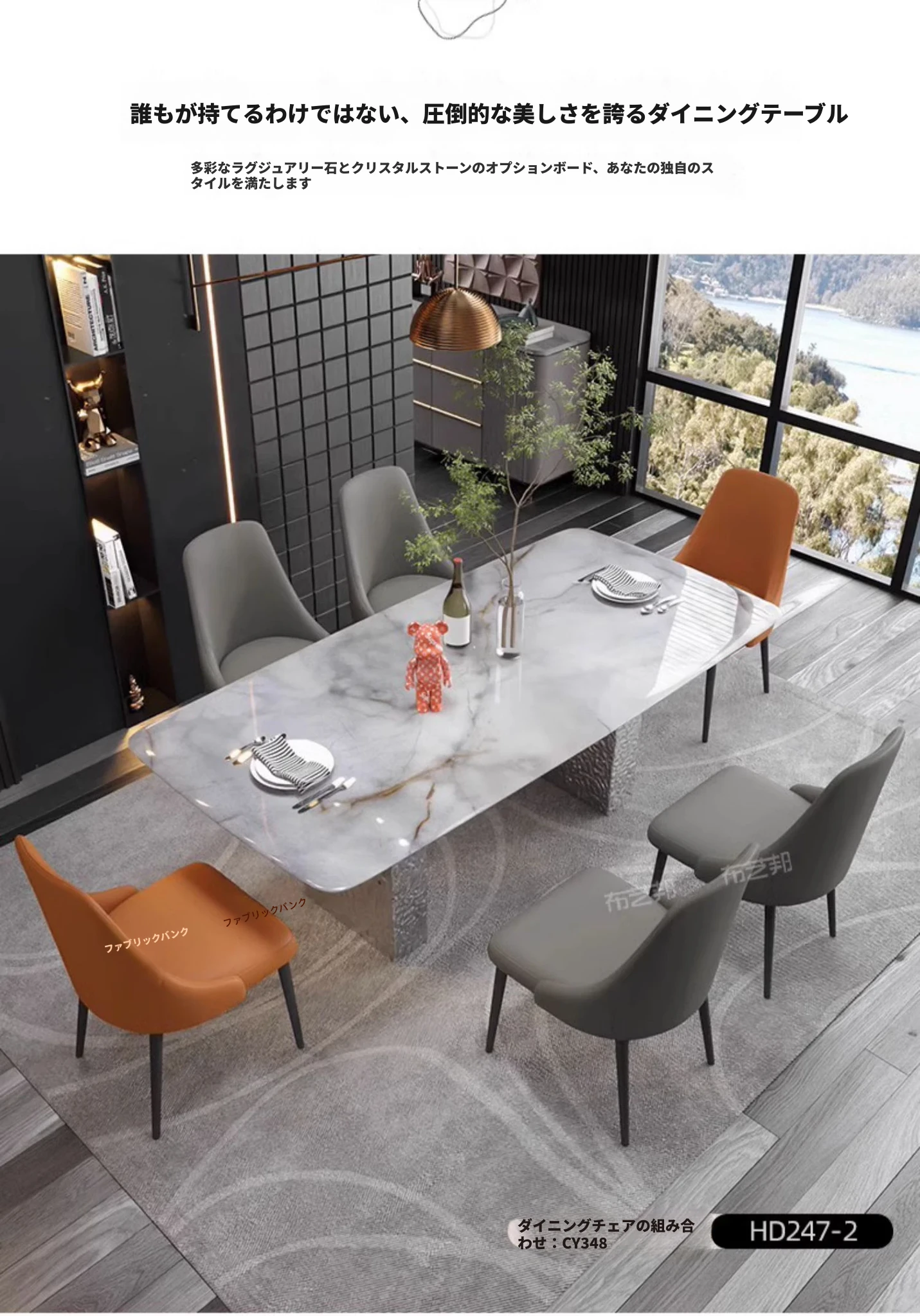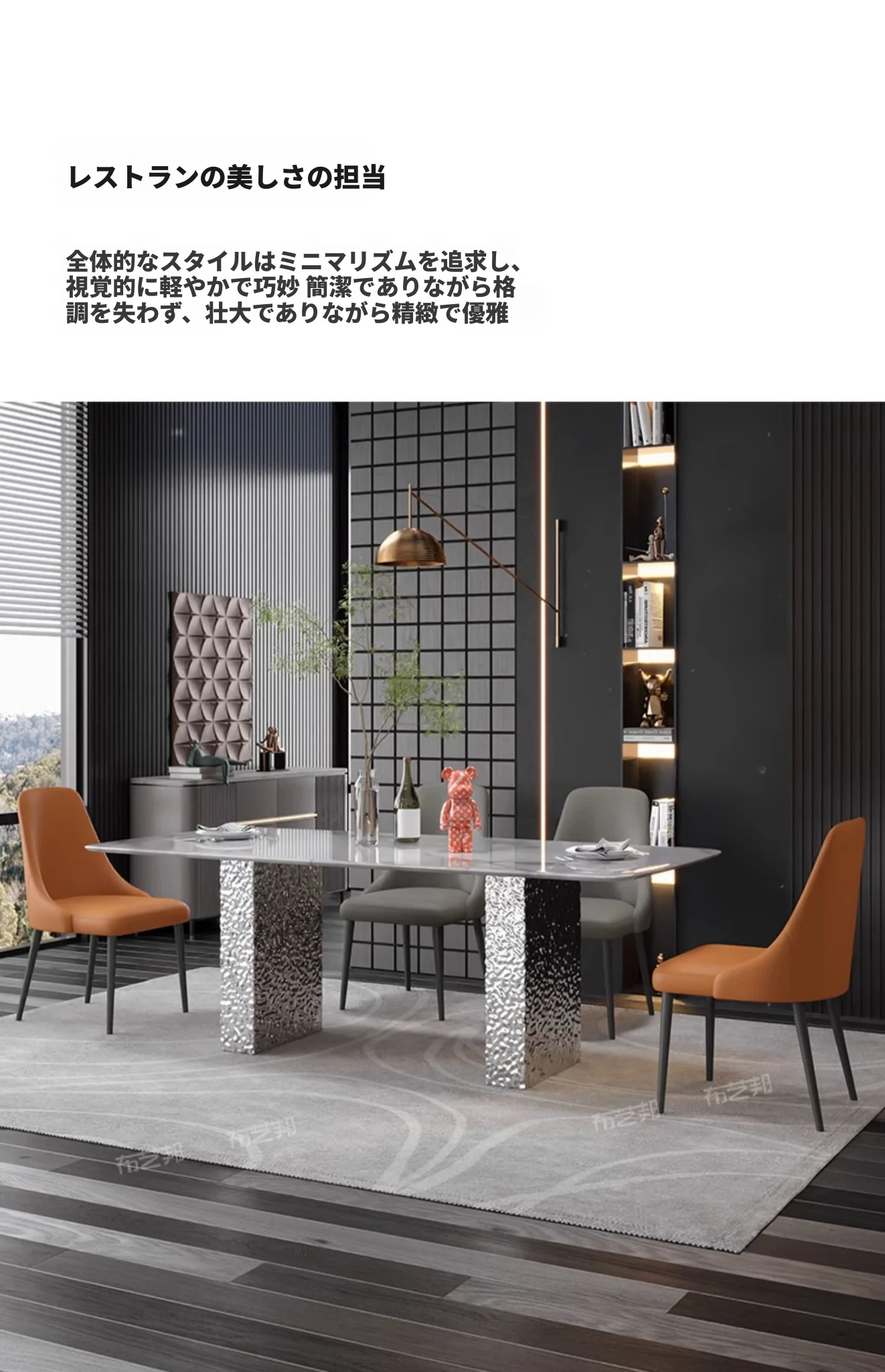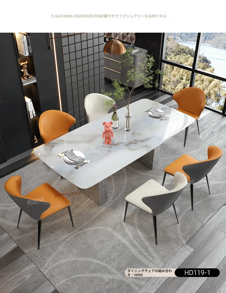 天然大理石と高級感溢れる彩晶石のダイニングテーブルセット - 小型スペースにぴったり!シンプルなデザインと耐久性のあるステンレス製の椅子で、優雅な食事空間を演出します。