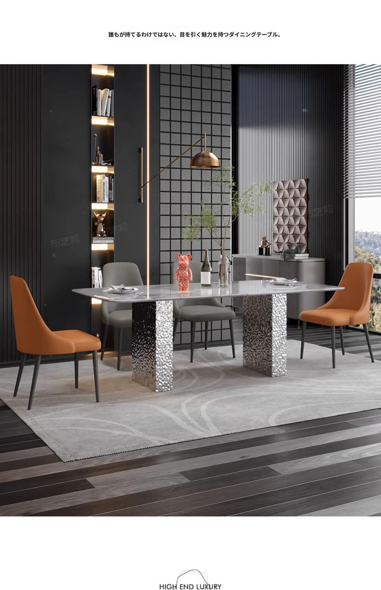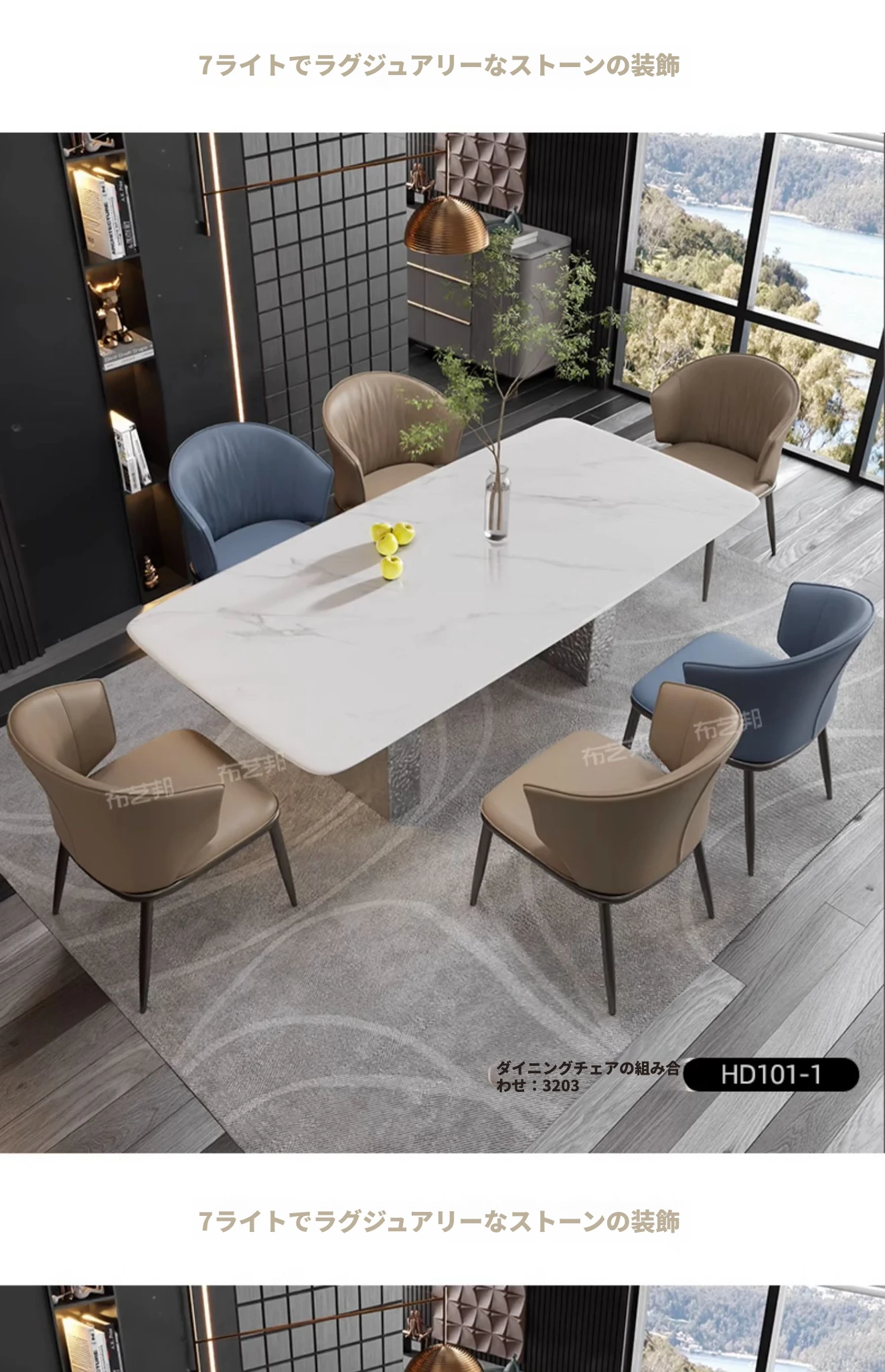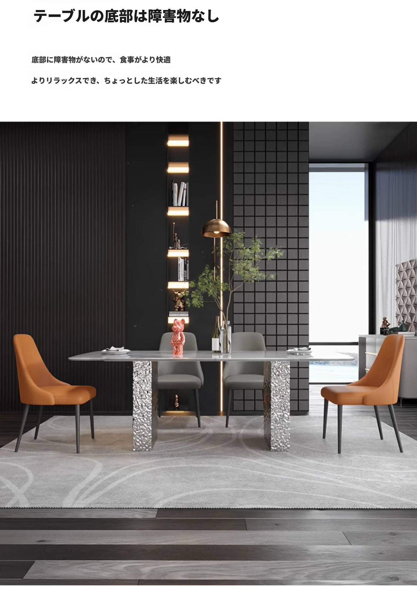 天然大理石と高級感溢れる彩晶石のダイニングテーブルセット - 小型スペースにぴったり!シンプルなデザインと耐久性のあるステンレス製の椅子で、優雅な食事空間を演出します。