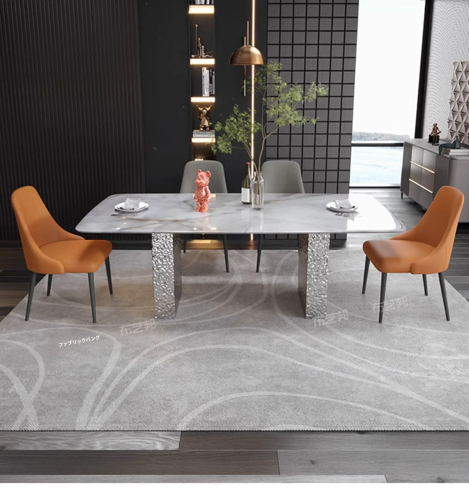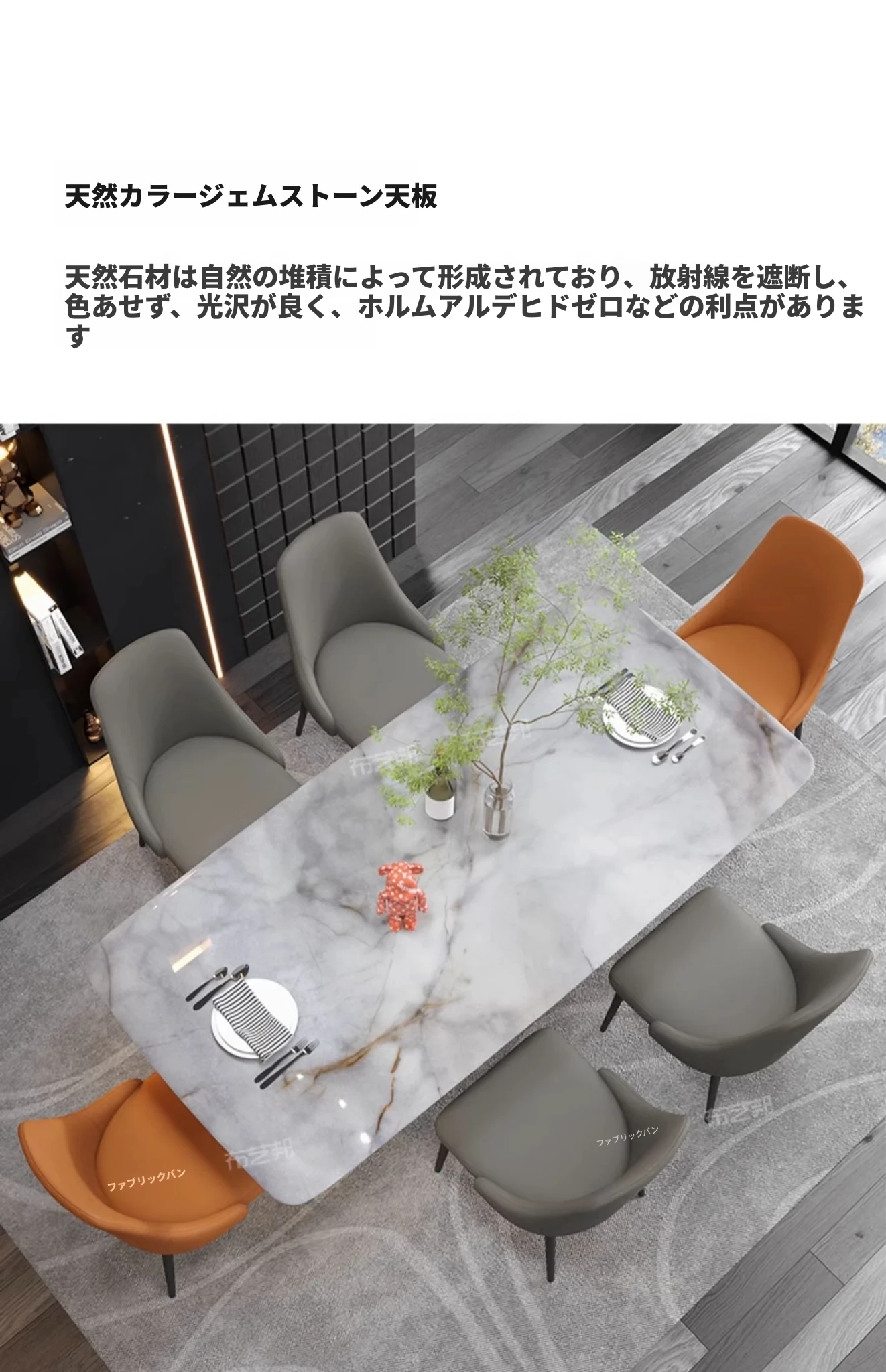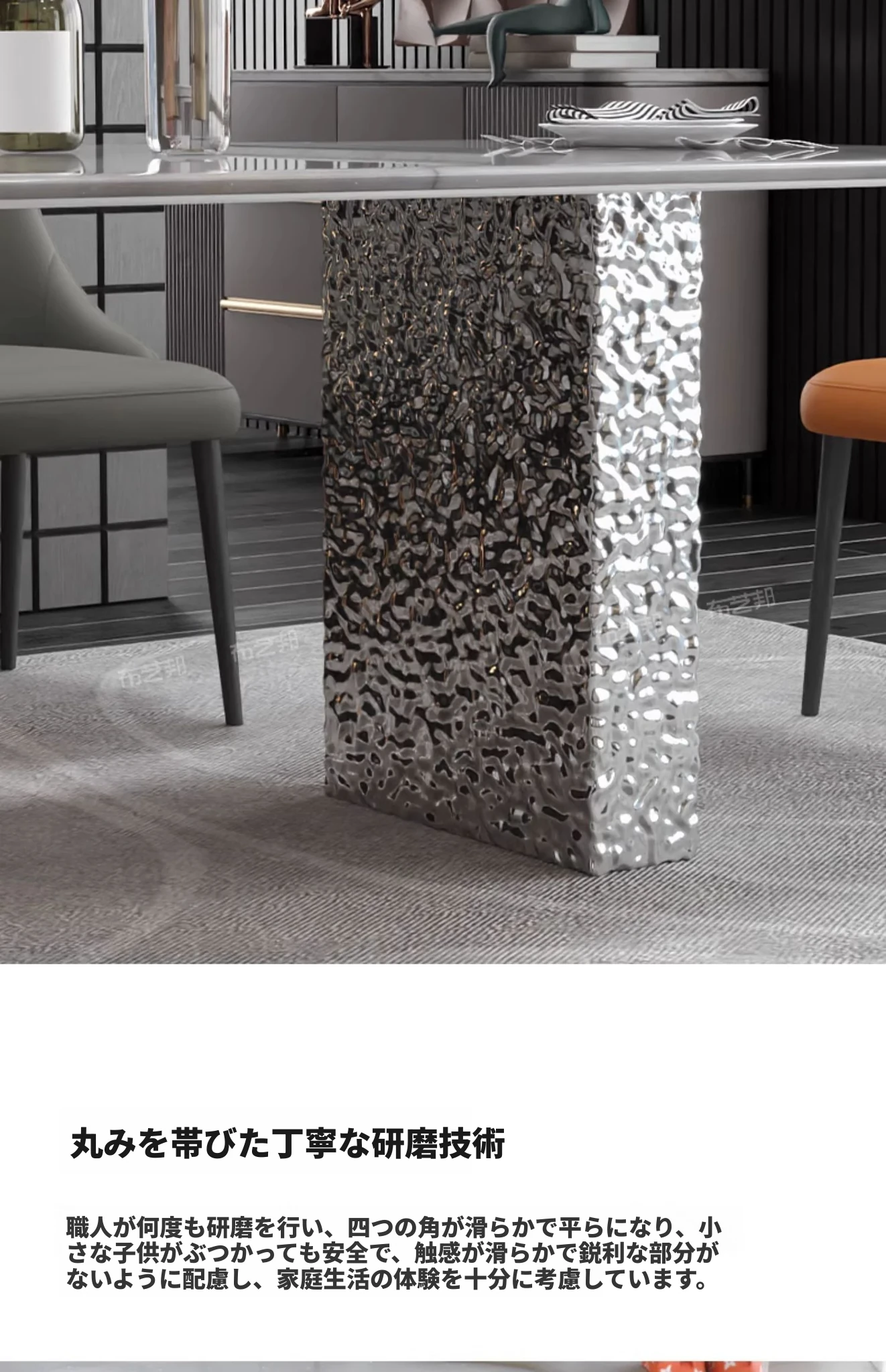【天然彩晶石+ステンレス製脚】1.8*0.9メートルテーブル