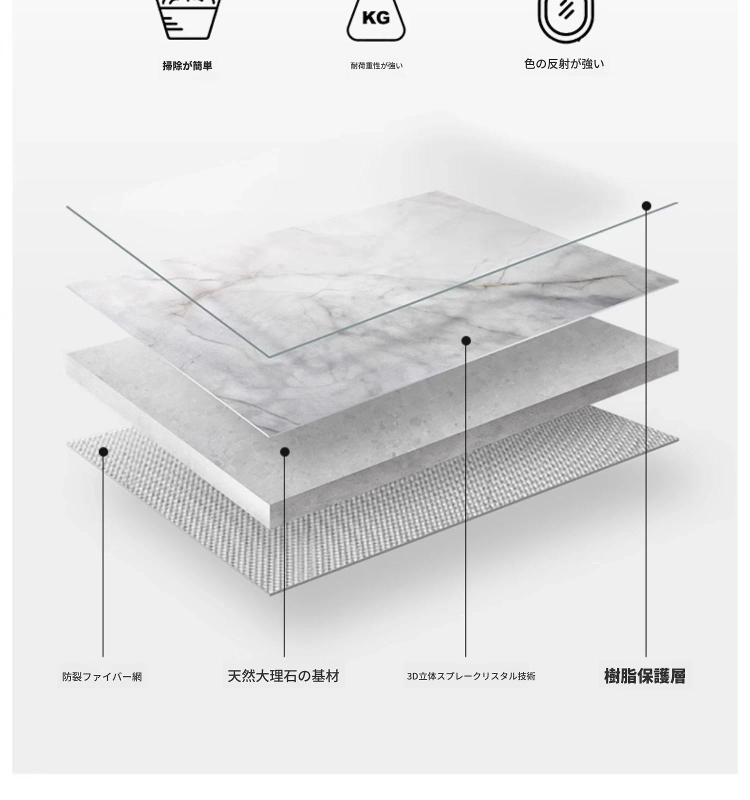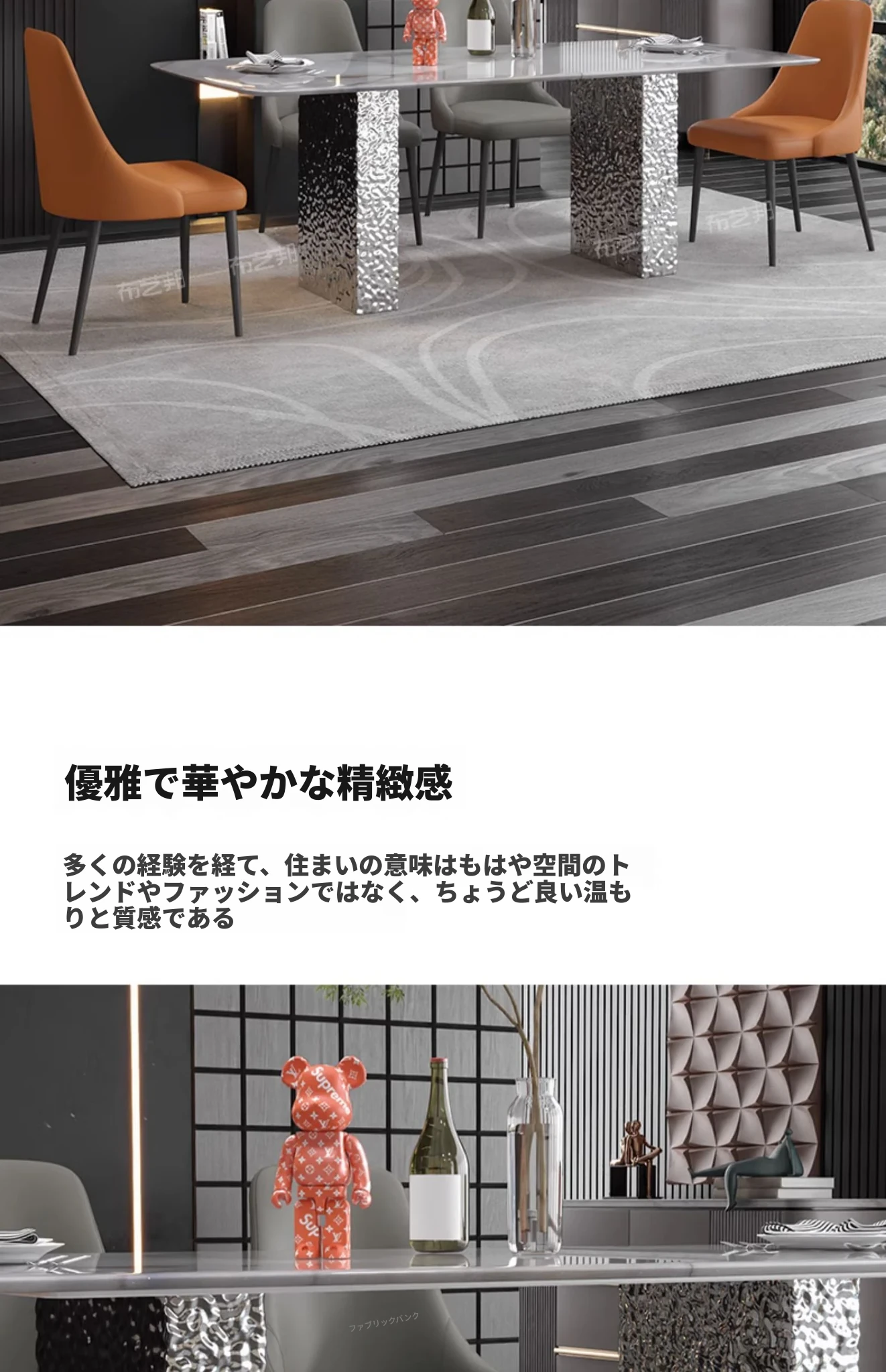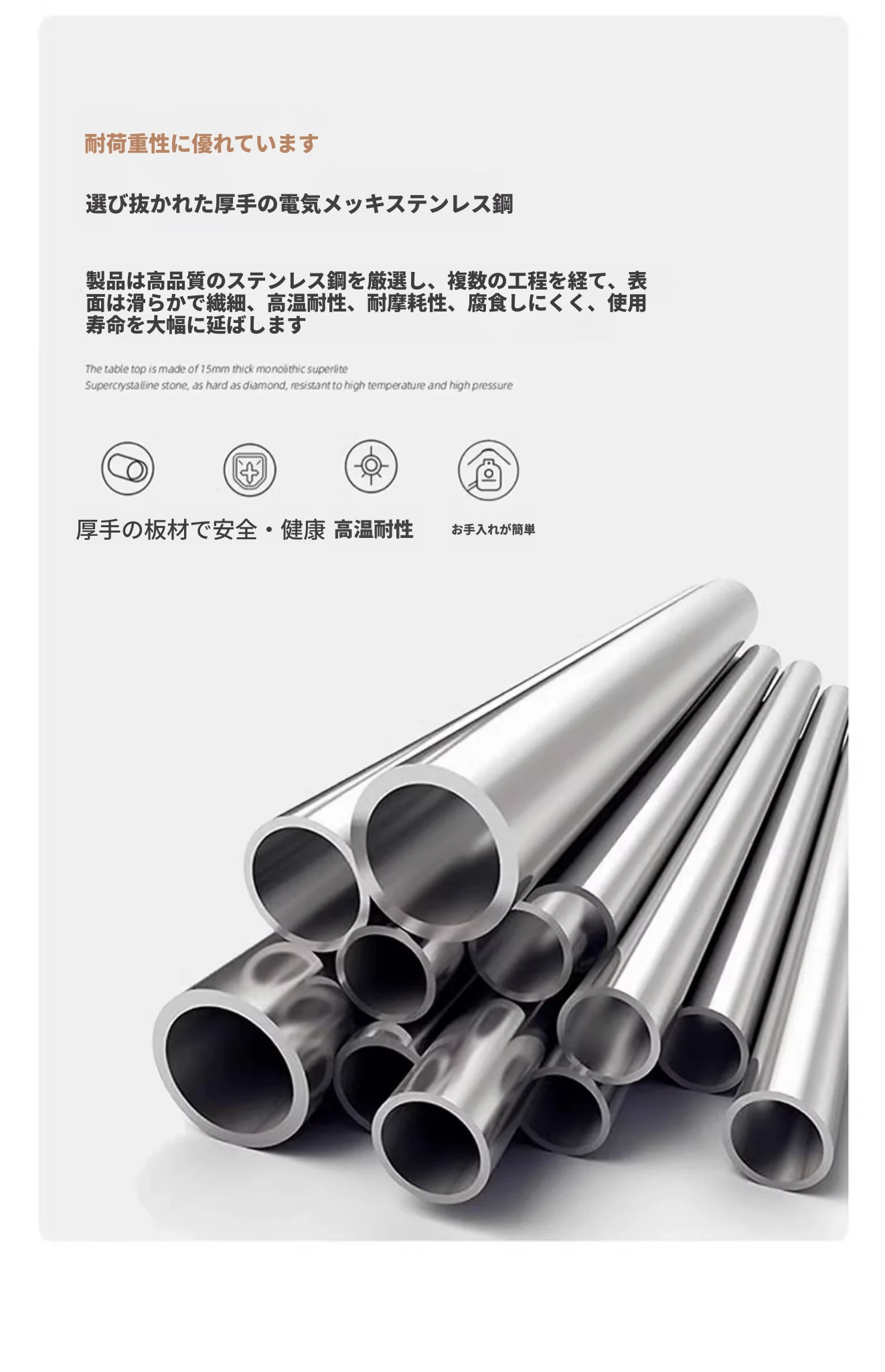 【天然彩晶石+ステンレス製脚】1.8*0.9メートルテーブル